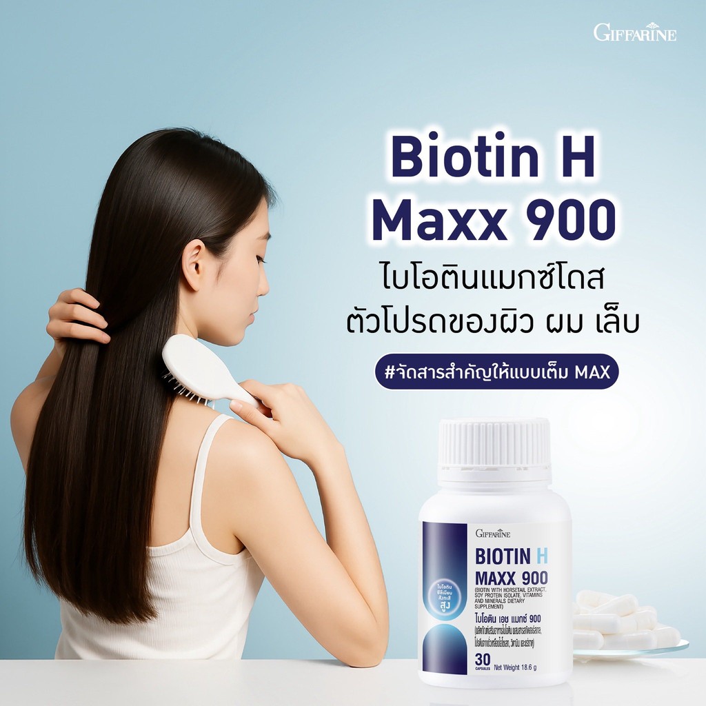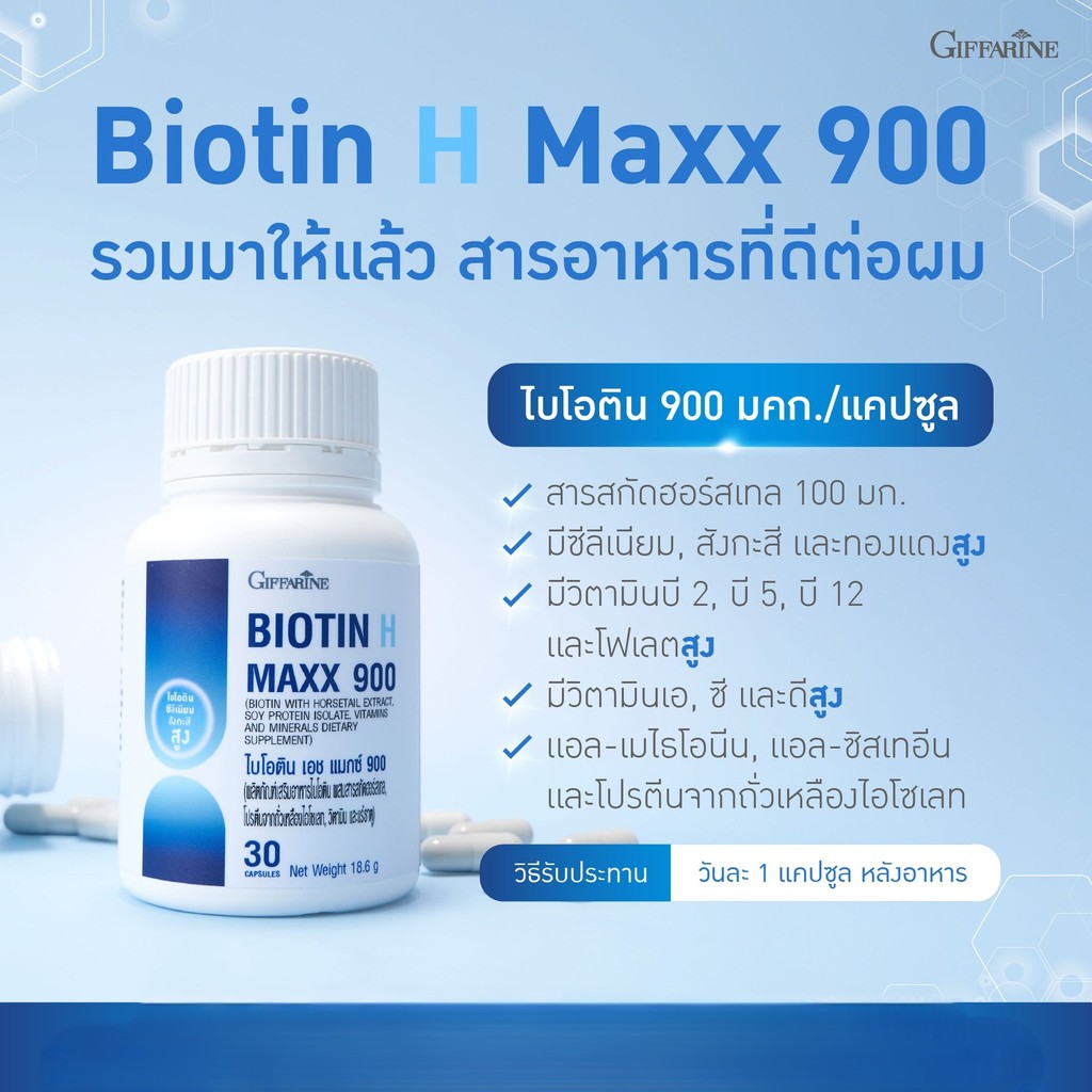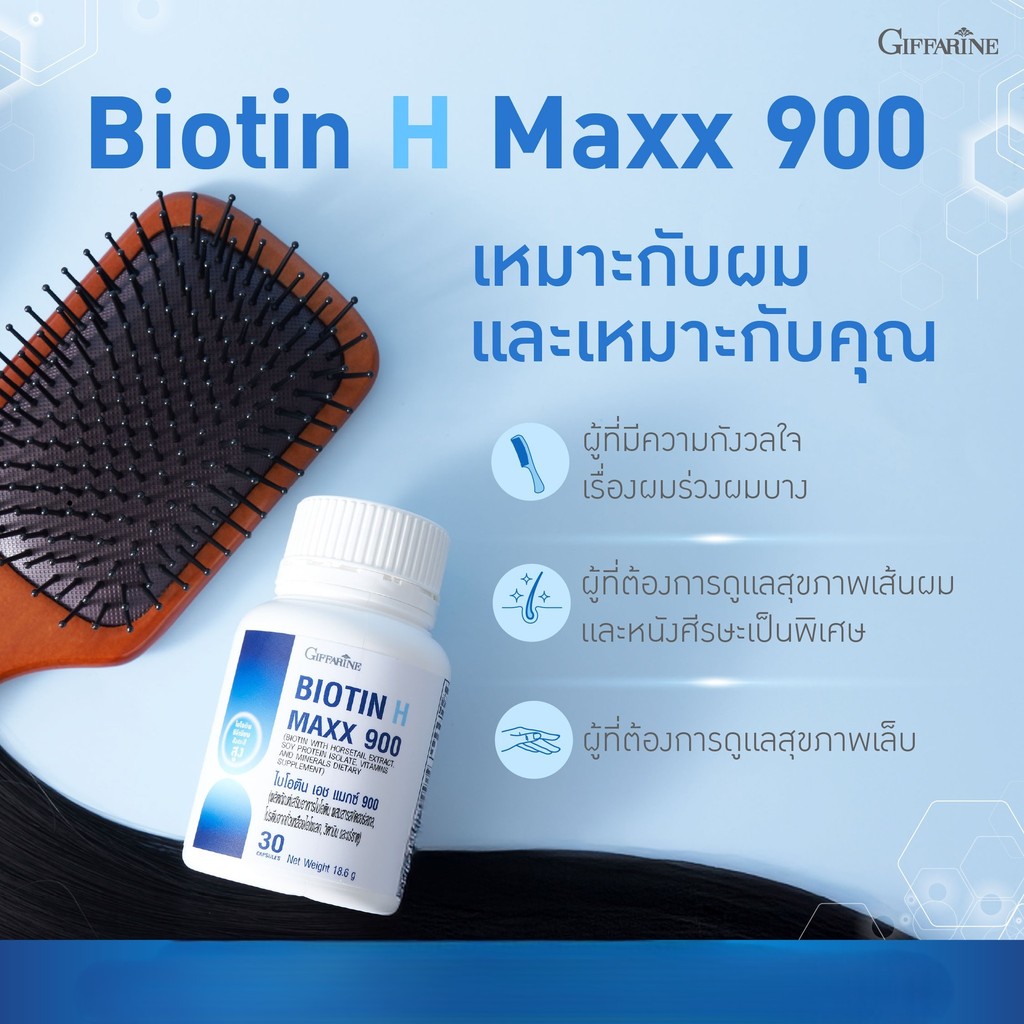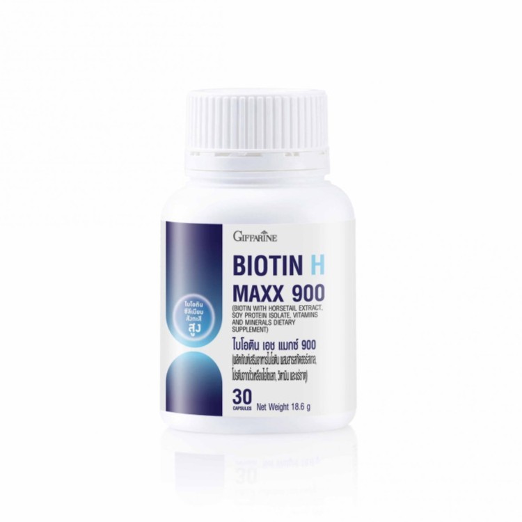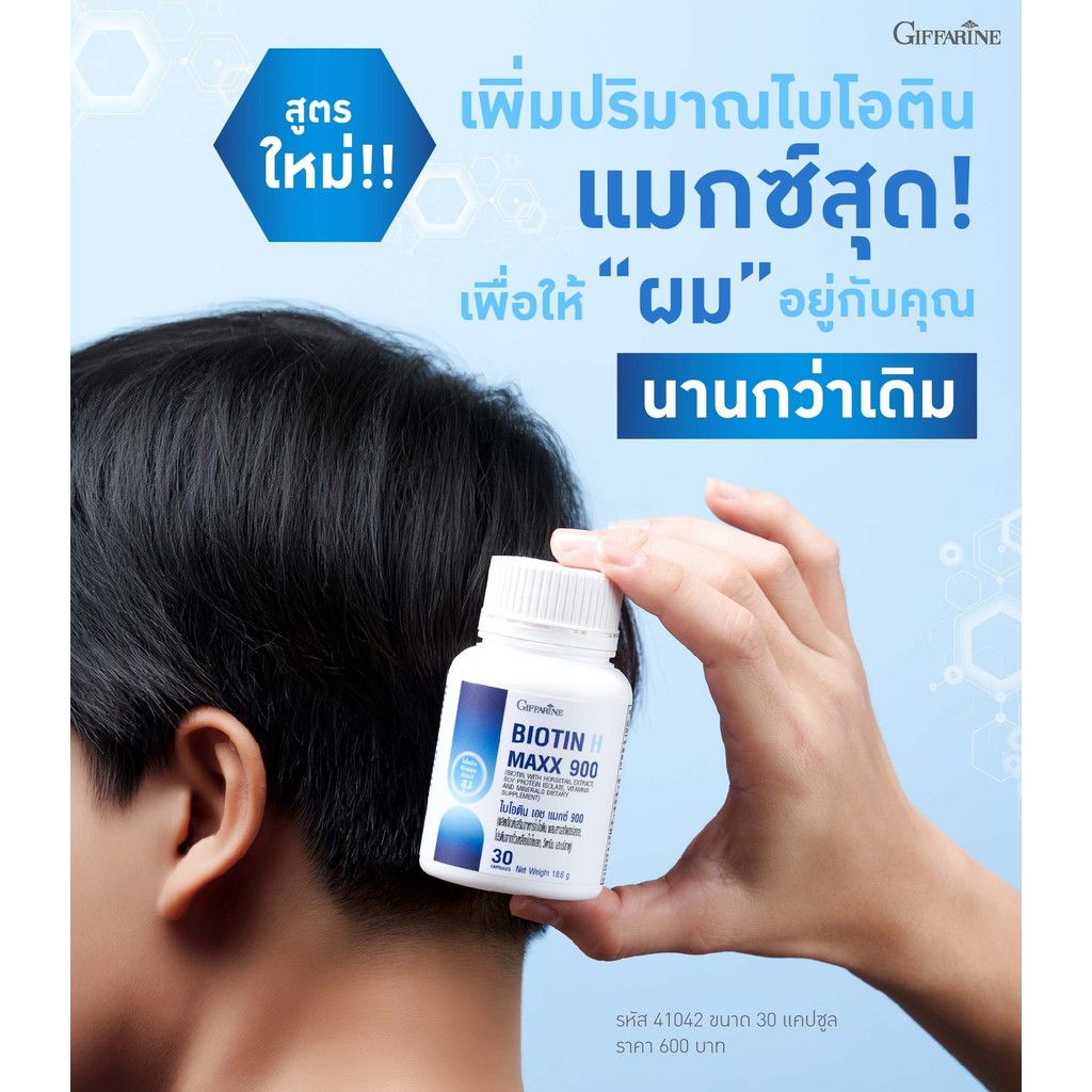 สูตรใหม่ กิฟฟารีน ไบโอติน เอช แมกซ์ 900 ปลูกผม บำรุงผม เร่งผมยาว บำรุงเล็บ BIOTIN H MAXX 900 (30แคปซูล)