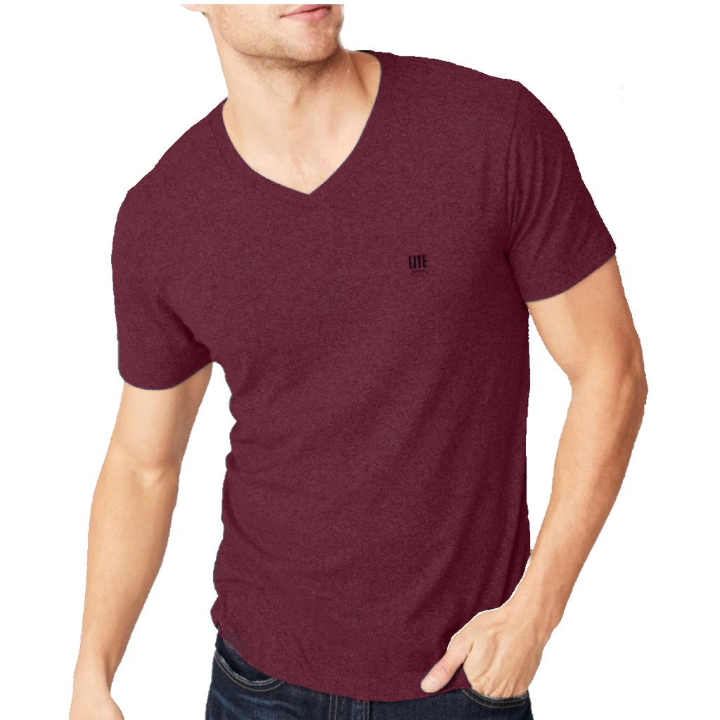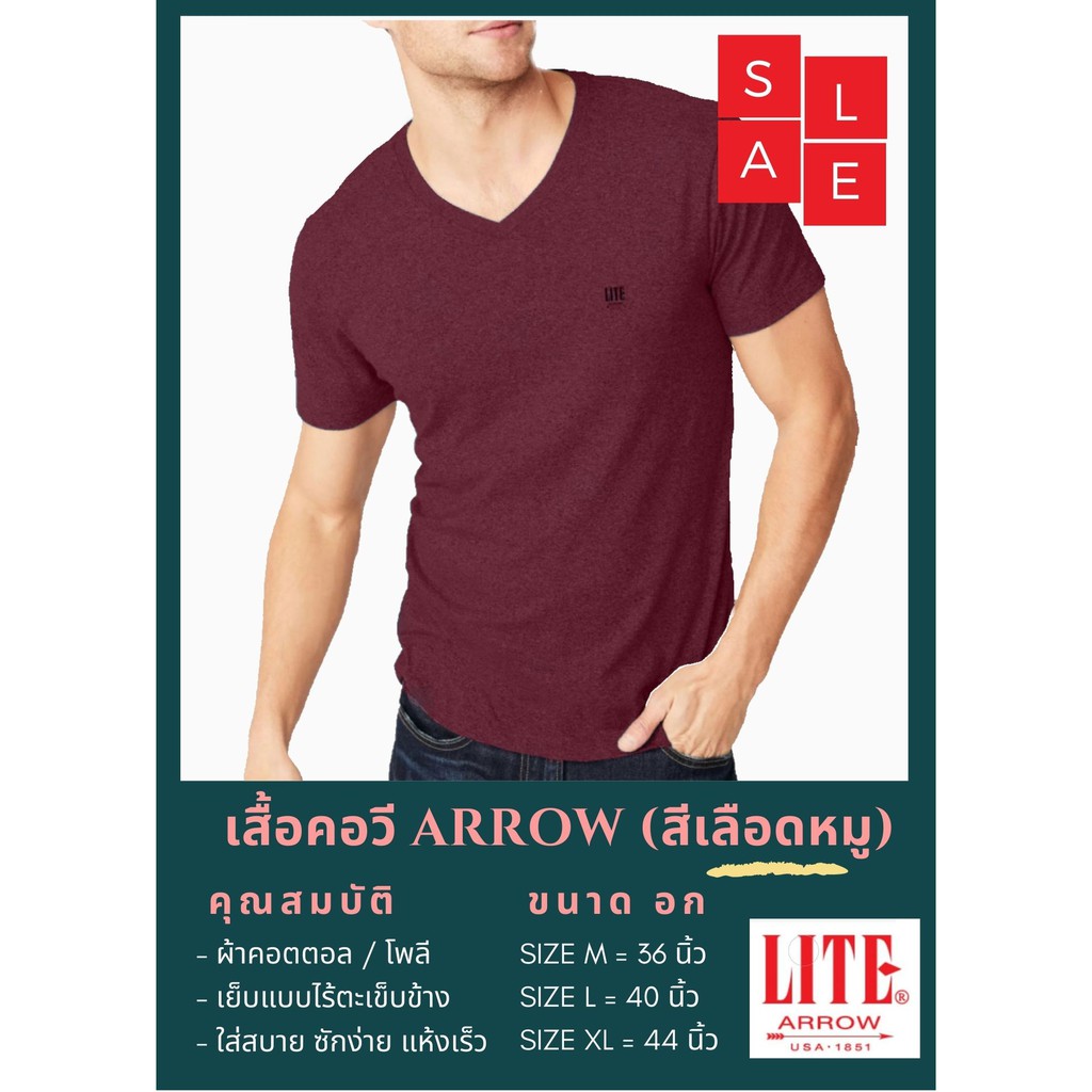 ARROW เสื้อยืด คอวี ไร้ตะเข็บ สีแดงเลือดหมู