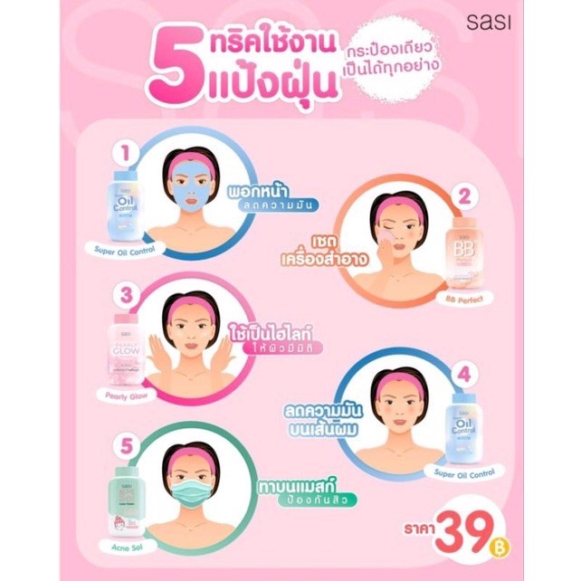 SASI ศศิ แป้งฝุ่น 50 กรัม แป้งศศิ เนื้อเนียนละเอียด คุมมัน