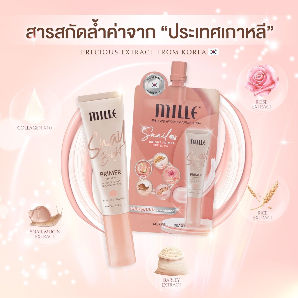 (1ซอง) Mille Snail Bright Primer ไพรเมอร์เบลอรูขุมขน คุมมัน 6 g.