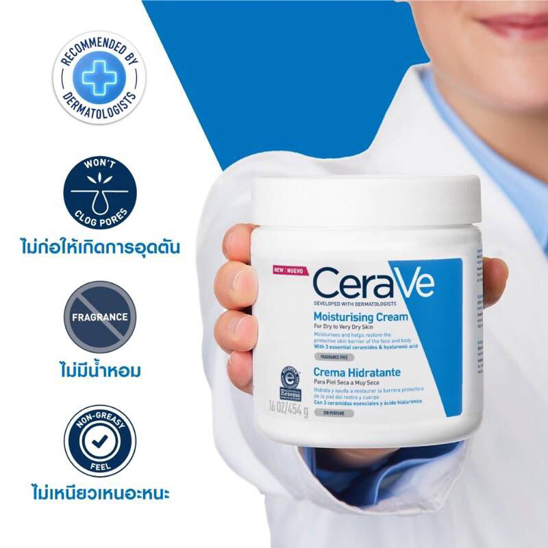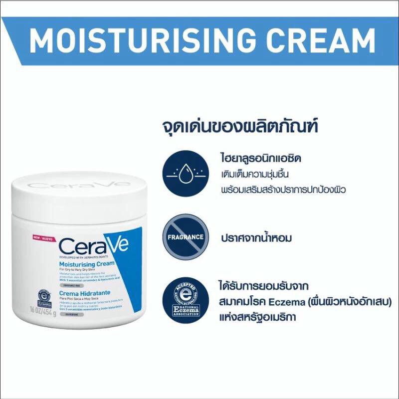 ครีมบำรุงผิวหน้าและผิวกายสูตร Cerave Moisturizing Cream 454ml สำหรับผิวแห้งถึงผิวแห้งมากครีมเข้มข้นซึมเร็วไม่เหนียวเหนอะ