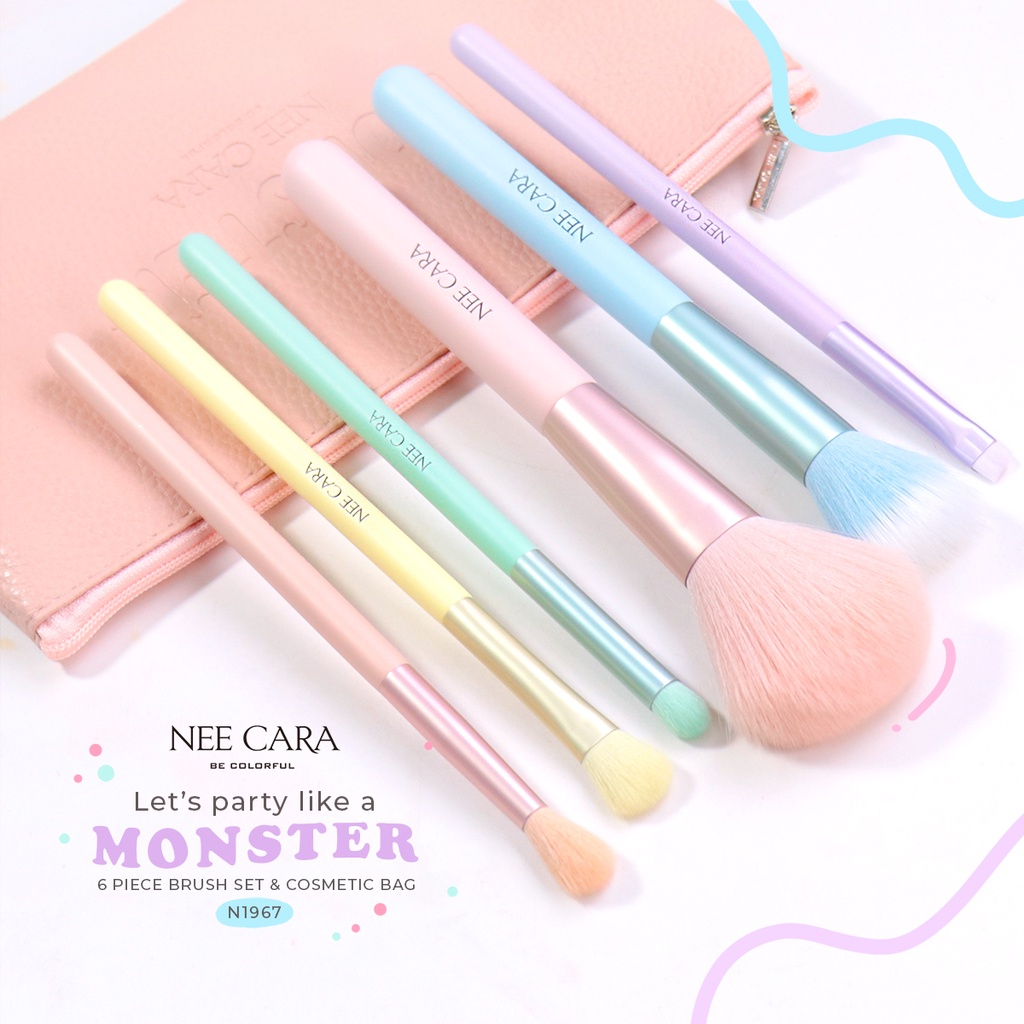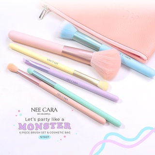 N1967 เซตแปรง Monster 6 ชิ้น Nee Cara MONSTER 6 Piece Brush Set & Cosmetic Bag
