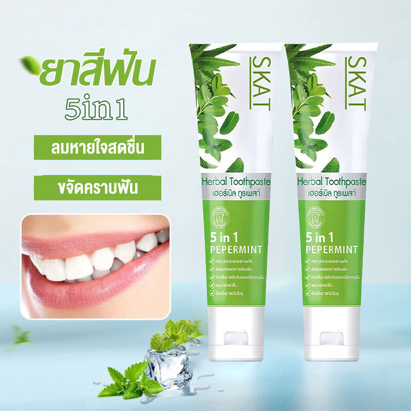 ยาสีฟัน ลมหายใจสดชื่น มีฟลูออไรด์ 100g 5in1 SKAT Herbal Toothpaste(1507)