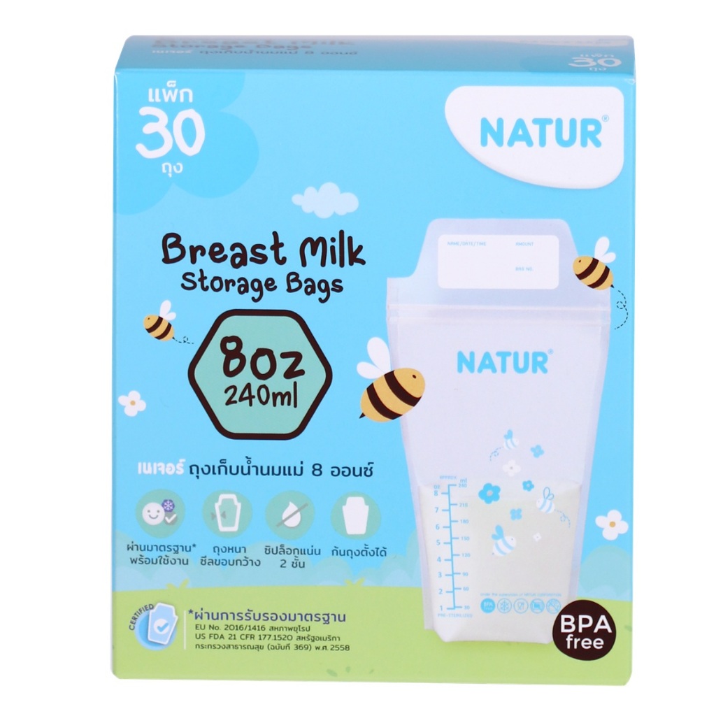 Natur เนเจอร์ ถุงเก็บน้ำนม ขนาด 4oz และ 8 oz 30 ถุง 1 กล่อง