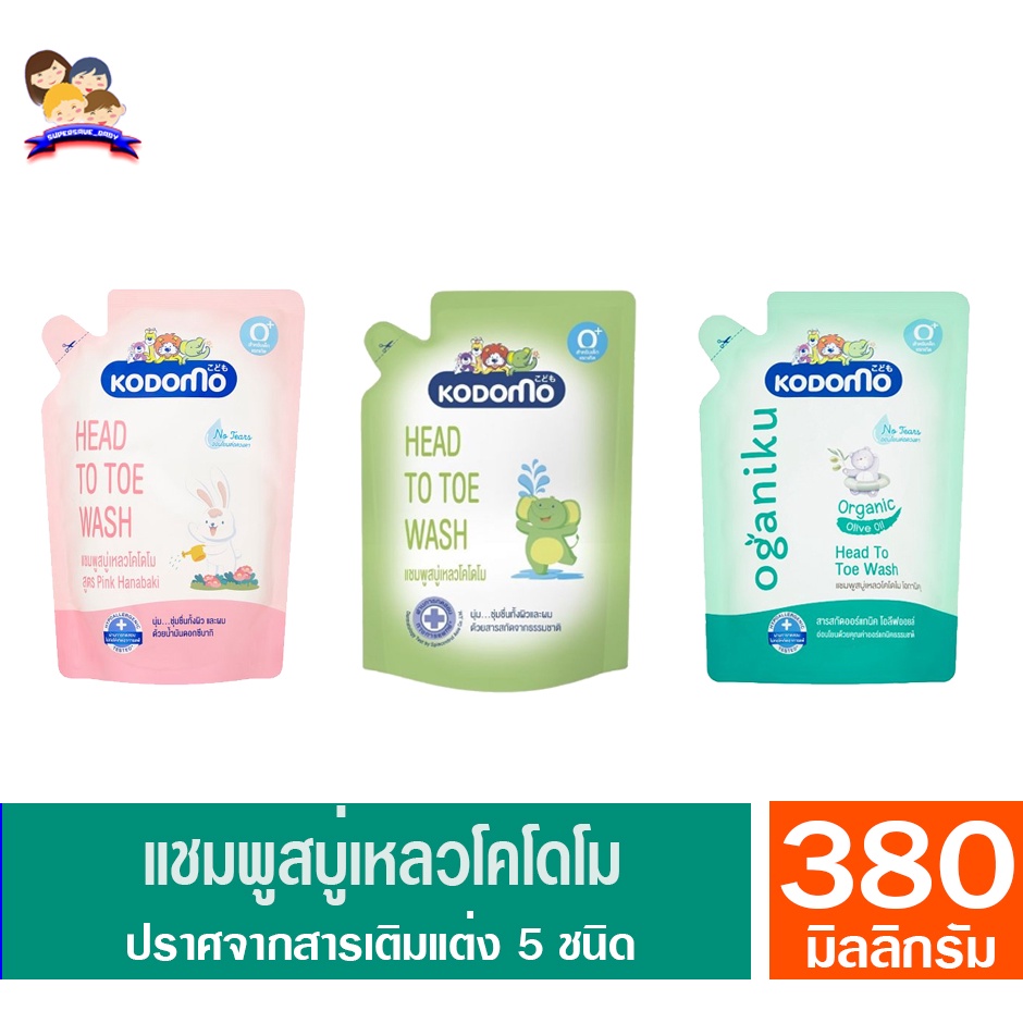 โคโดโม เฮดทูโทวอช แชมพูสบู่เหลว สำหรับเด็กแรกเกิด ขนาด 380 มล.**ถุงเติม**