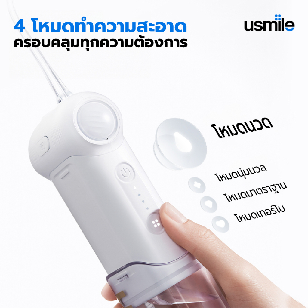 usmile C10 Water Flosser ไหมขัดฟันพลังน้ำ 4 ทำความสะอาด ถังเก็บน้ำขนาด 180 มล อายุการใช้งานแบตเตอรี่ 95 วัน ระดับการกันน้ำ IPX8 ประกอบด้วยหัวฉีด 3 อัน แบบพกพา