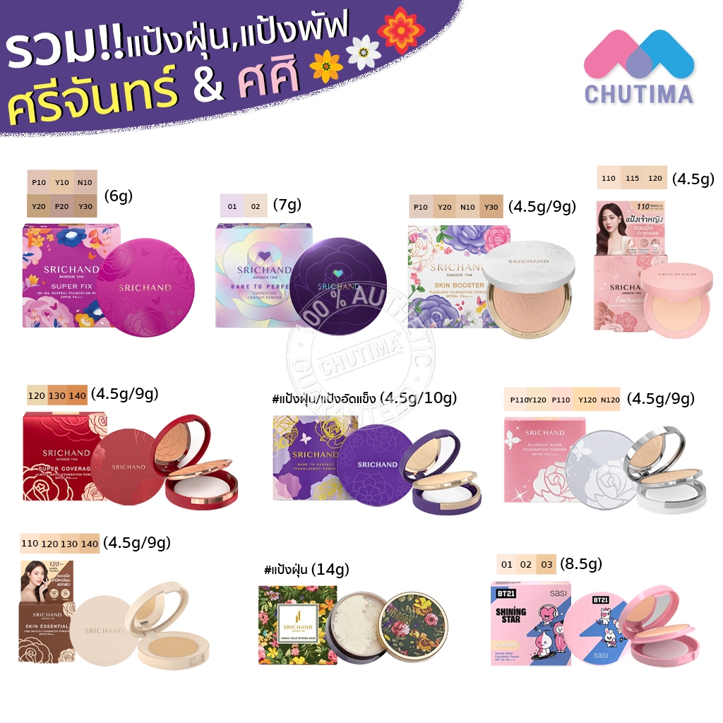 รวมแป้งขายดียอดฮิต ศศิ ศรีจันทร์ แป้งฝุ่น แป้งพัฟ คุมมัน กันแดด Sasi Srichand Essential Compact Powder SPF50 PA++++