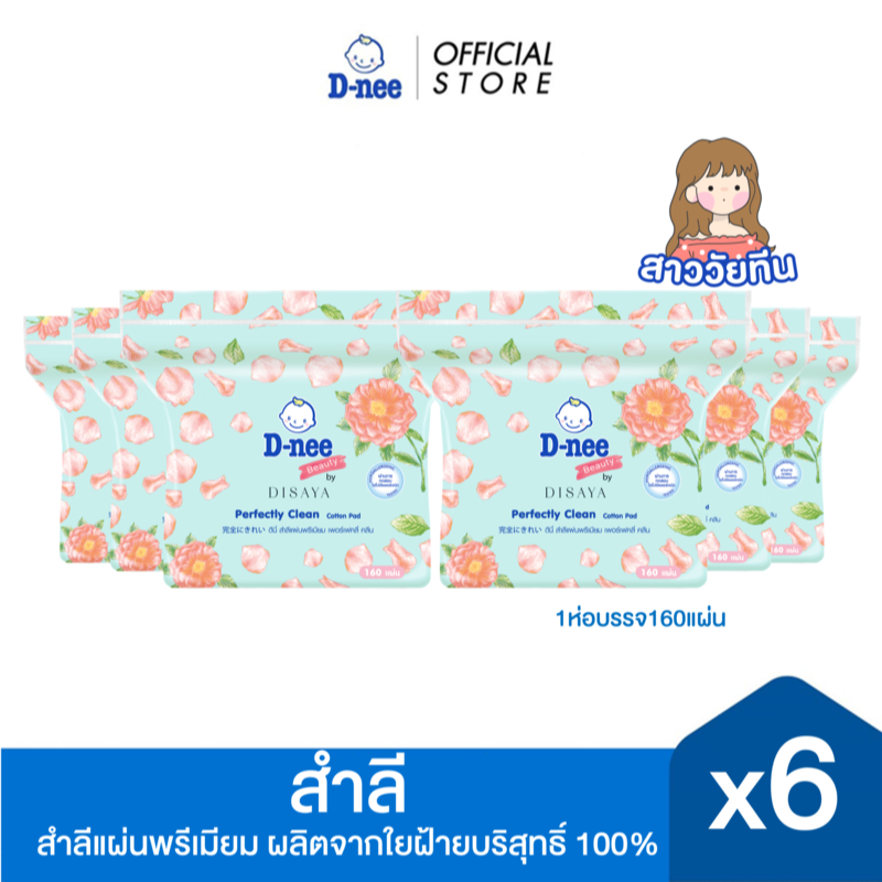 [แพ็ค6] D-nee ดีนี่ ผลิตภัณฑ์สำลีแผ่นพรีเมียม 160 แผ่น x6