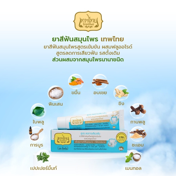 (1 หลอด) Tepthai ยาสีฟันเทพไทย สูตรดั้งเดิม(สีฟ้าขาว) (70 g.)