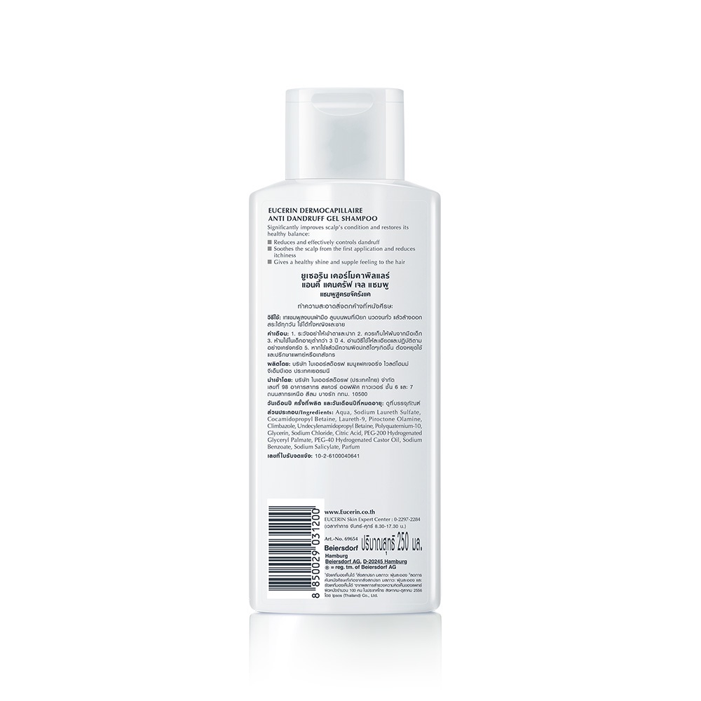 Eucerin Dermocapillaire Anti-Dandruff Gel Shampoo 250 ml. ยูเซอริน แชมพูขจัดรังแค บำรุงเส้นผม ลดผมขาดร่วง