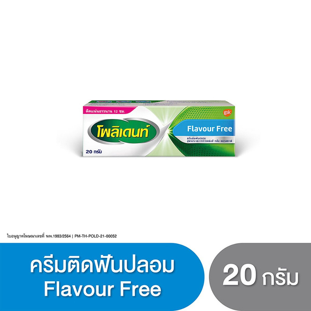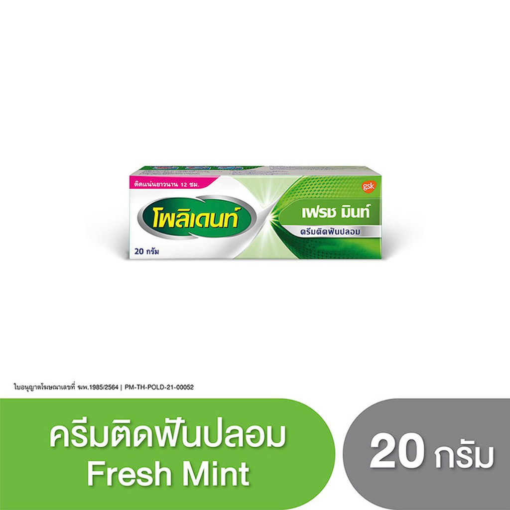 Polident โพลิเดนท์ ครีมติดฟันปลอม กาวติดฟันปลอม 20 กรัม Fresh mint / Flavour Free 1 หลอด