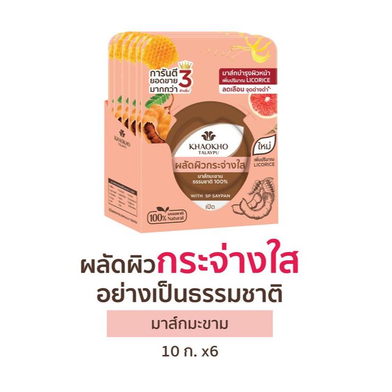 Khaokho Talaypu เขาค้อทะเลภู มาส์กหน้า สูตรมะขาม ผิวดูกระจ่างใส (10 ก. X 6)
