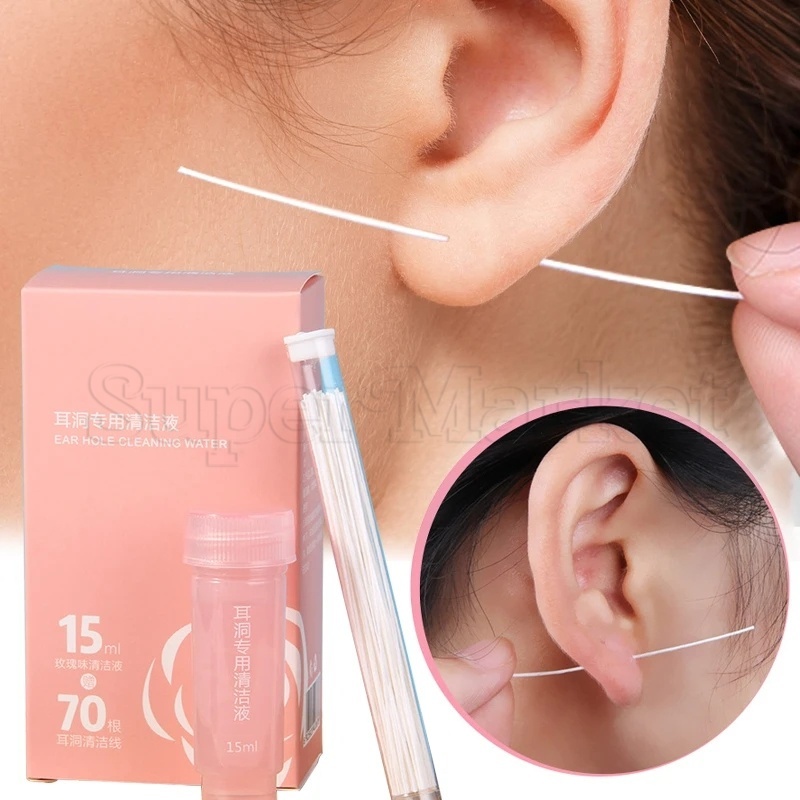 60/70pcs Pierced Ear Cleaning Set Ear Hole Tools Kit Ear Hole Cleaning Line Paper Solution Disposable Earrings Hole Cleaner ear hole cleaning line