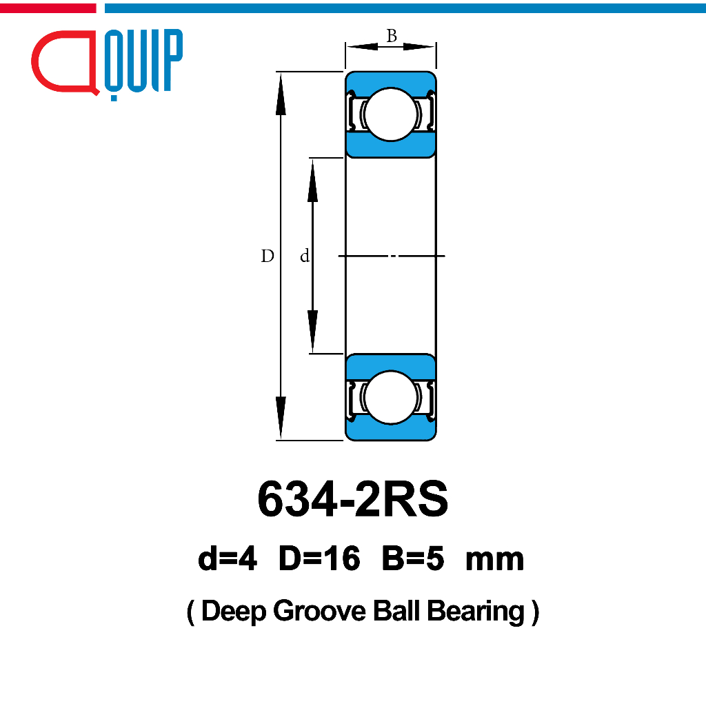 634-2RS UBC ตลับลูกปืนเม็ดกลมร่องลึก ฝายาง 2 ข้าง ขนาด 4x16x5 มม. ( Miniature Ball Bearing 634 2RS ) 634RS