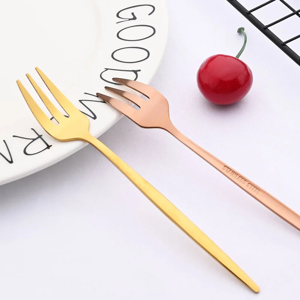 6Pcs Mini Fork Set For Fruit Cake Snack Stainless Steel Tea Fruit Fork Set Dessert Fork Mirror Gold Small Salad Fork Din
