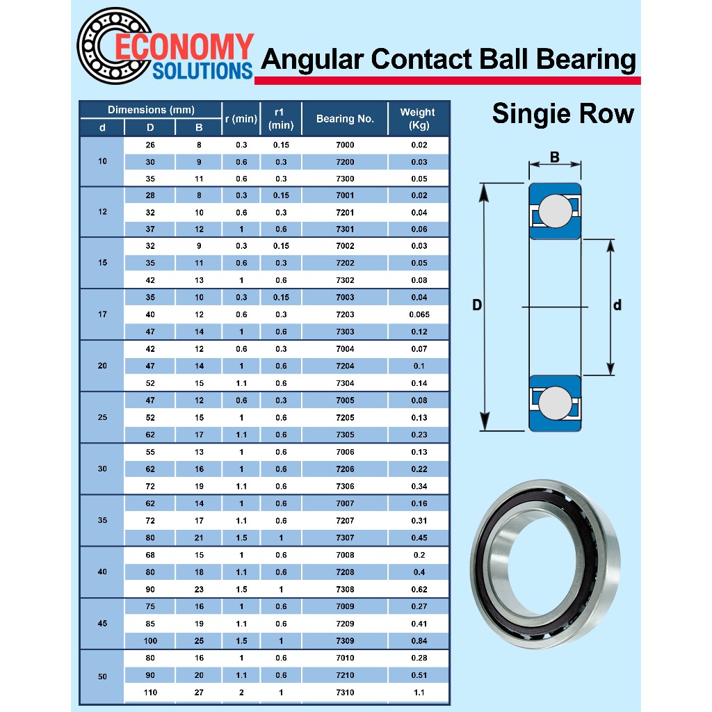 7000 7001 7002 7003 7004 7005 ตลับลูกปืนเม็ดกลมสัมผัสเชิงมุม Angular Contact Ball Bearing (Single Row) ลูกปืนแถวเดียว