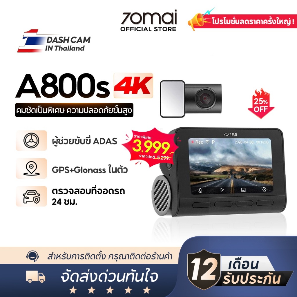 [ลดราคาครั้งใหญ่ที่สุด] 70mai Dash Cam [A500S/A800S/A200-1/A500] Car Camera
