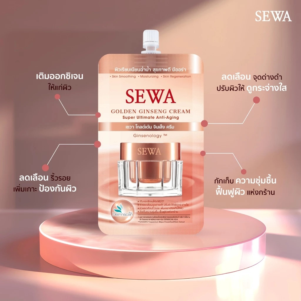 (1 ซอง) SEWA Golden Ginseng Cream เซวา ครีมโสมทอง (ปริมาณ 7 ml.)