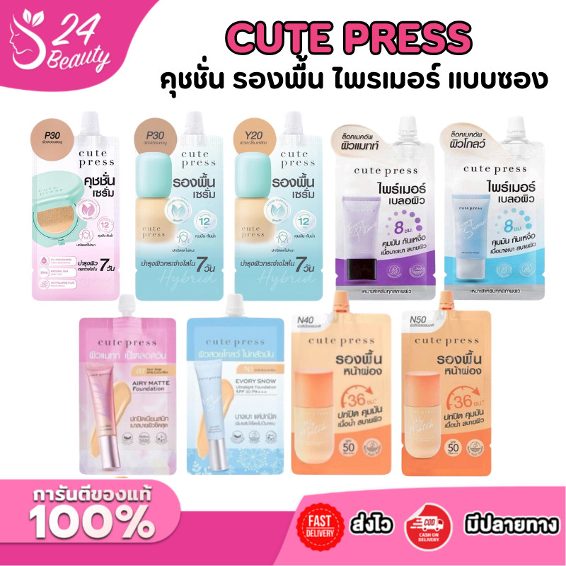 รองพื้นซองรุ่นใหม่ CUTE PRESS 1-2 Beautiful Airy Matte ,Evory Snow Foundation ขนาด 5 กรัม