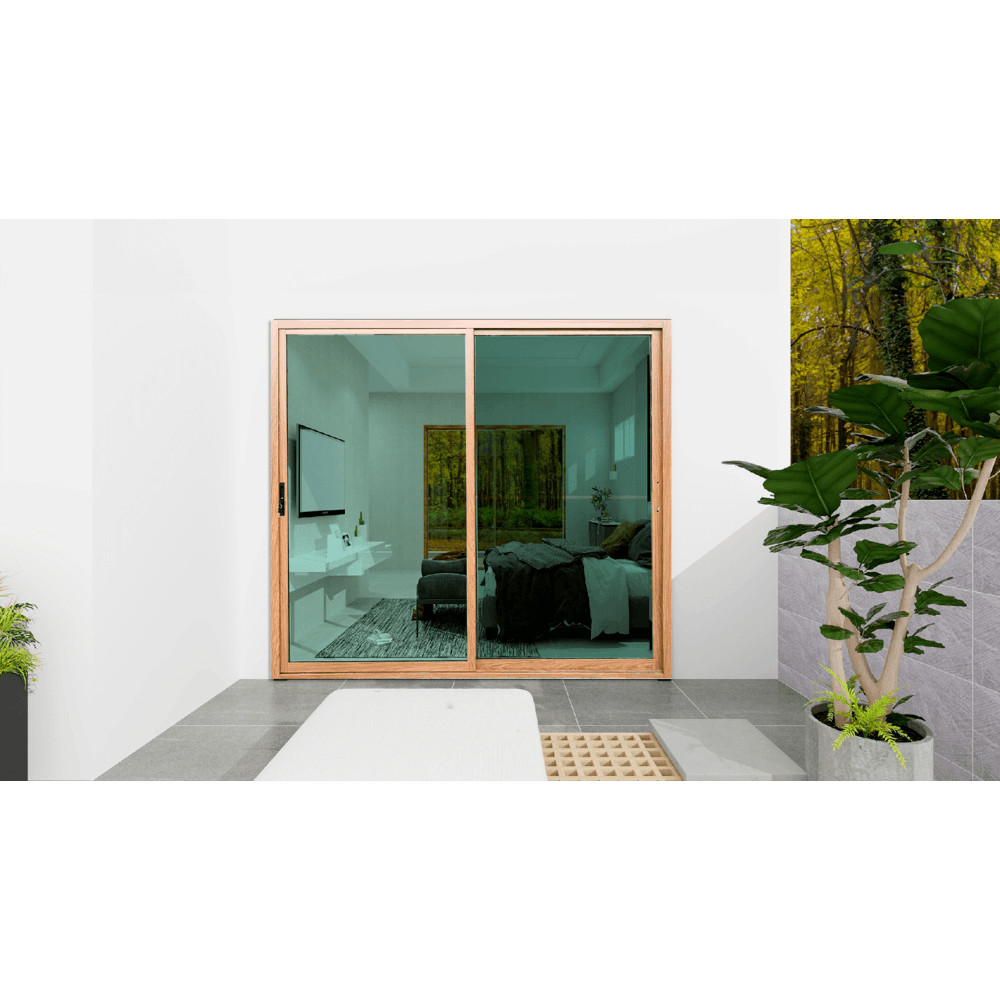 GlobalHouse WELLINGTAN ประตูอลูมิเนียมบานเลื่อน N-ADG2025 200x205CM สีไม้ พร้อมมุ้ง สินค้าของแท้คุณภาพดี