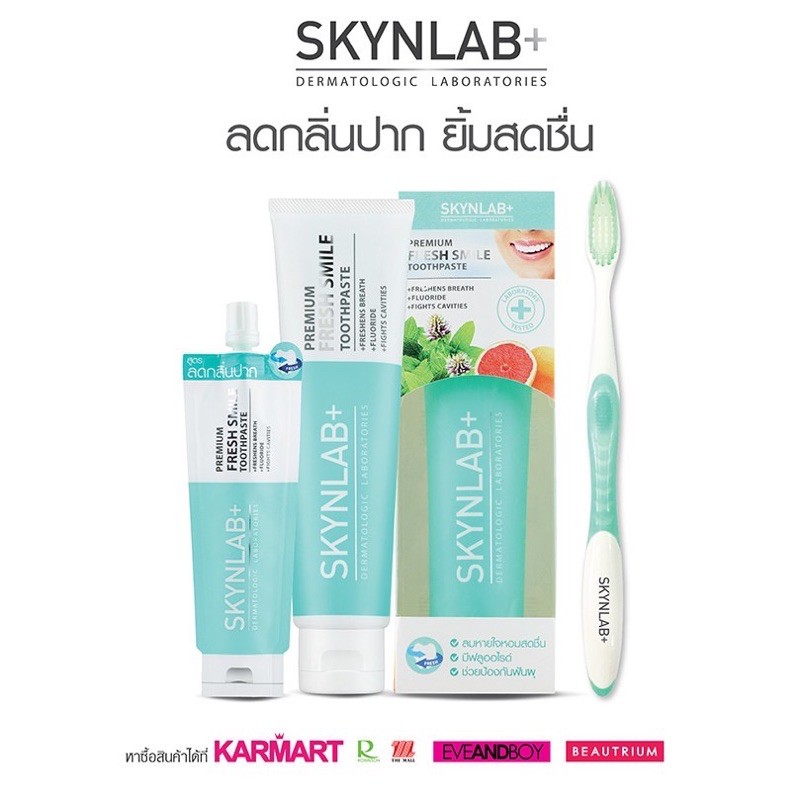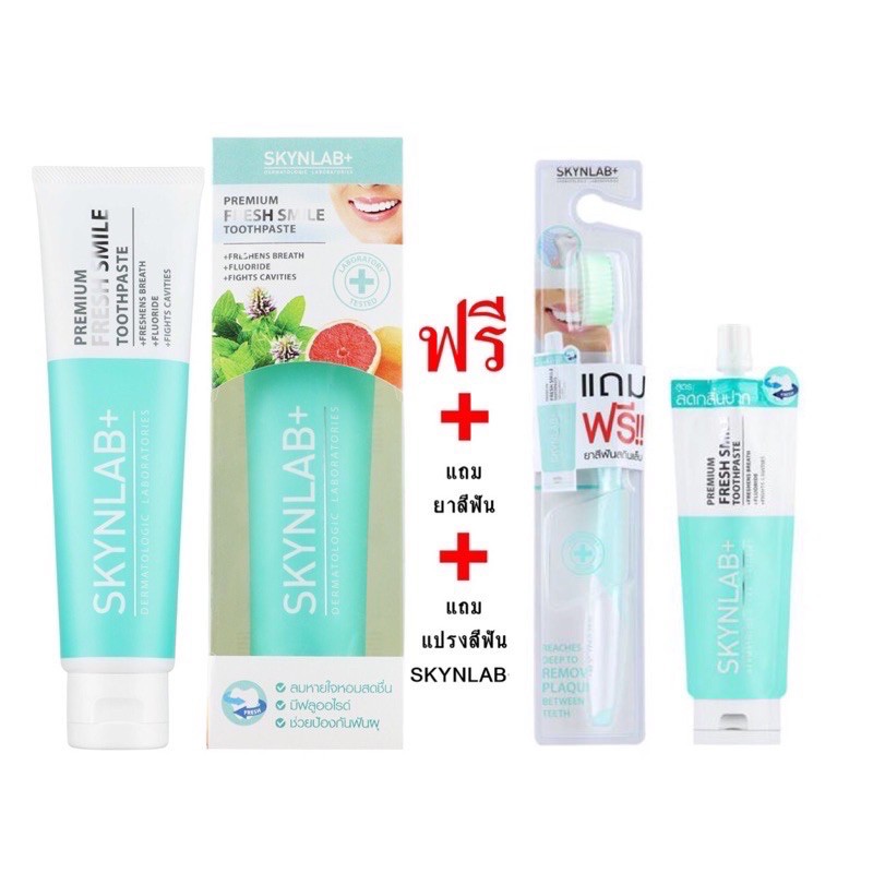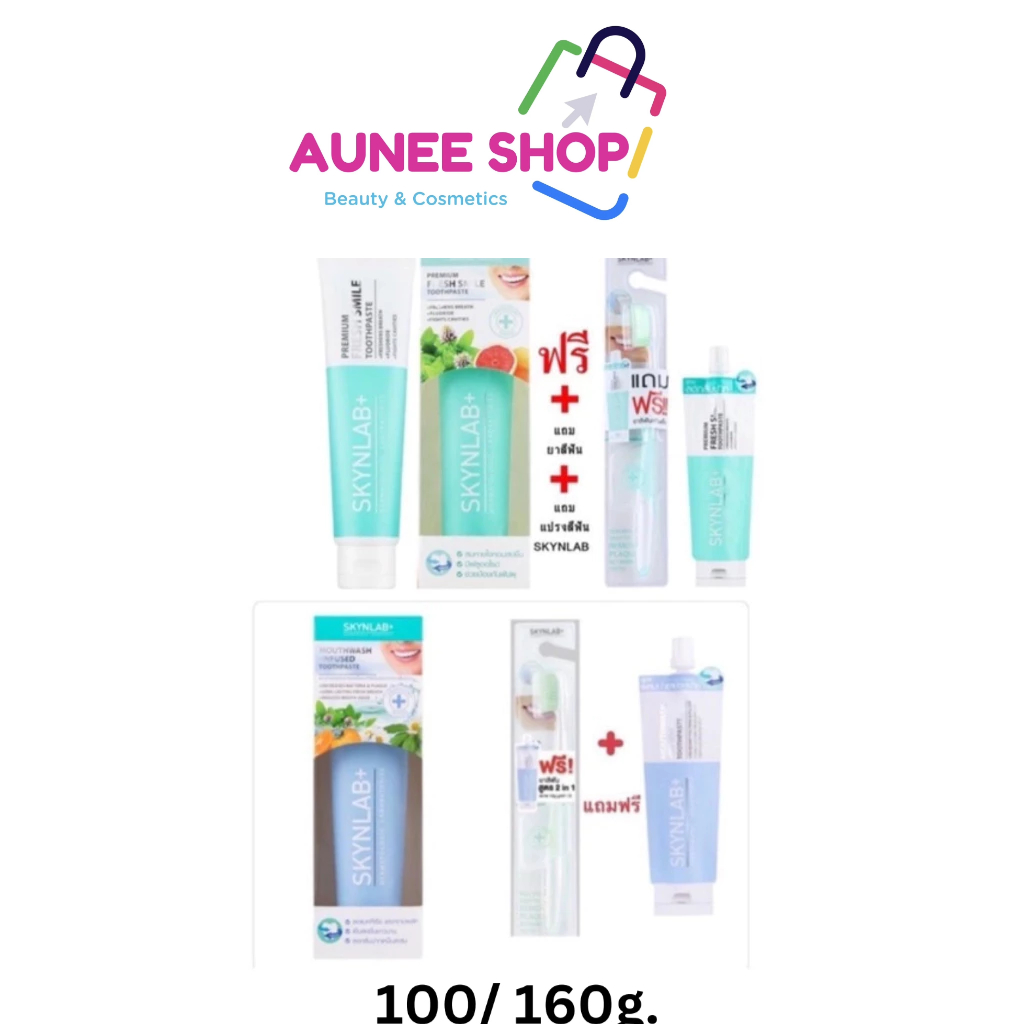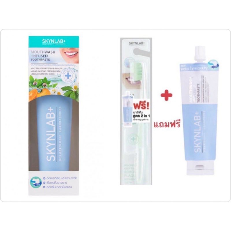 ส่งฟรี/มีไลฟ์ ยาสีฟัน สกินแล๊ป 2 สูตร SKYNLAB+ Mouthwash Infused /Premium Fresh Smile Toothpaste 100/160g