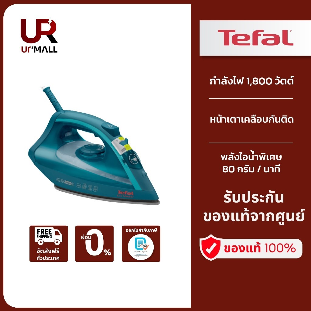 TEFAL เตารีดไอน้ำ รุ่น FV1720T0 กำลังไฟ 1800 วัตต์ หน้าเตาเคลือบกันติด รีดลื่น "ส่งฟรีทั่วไทย"