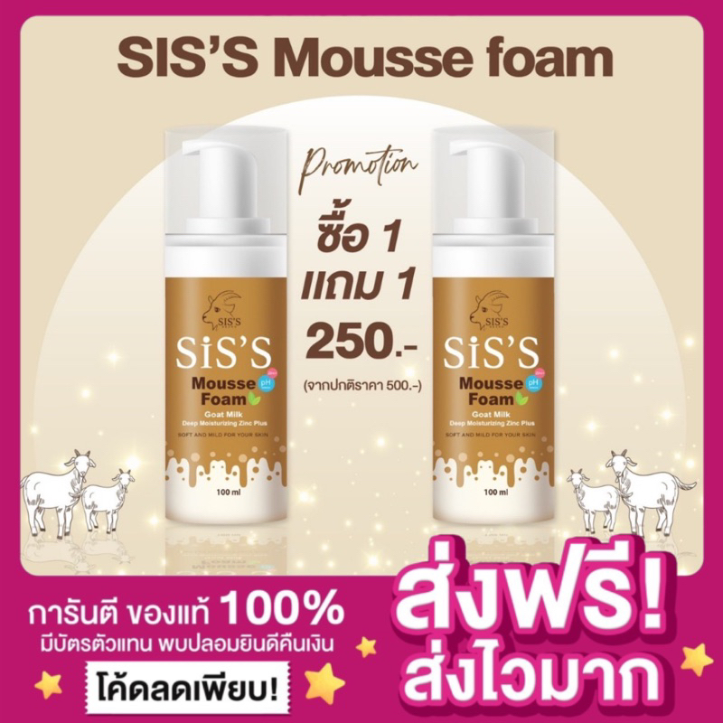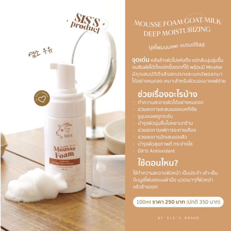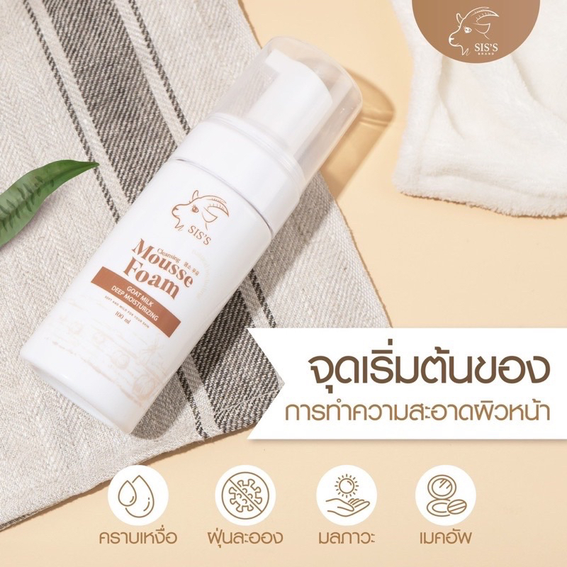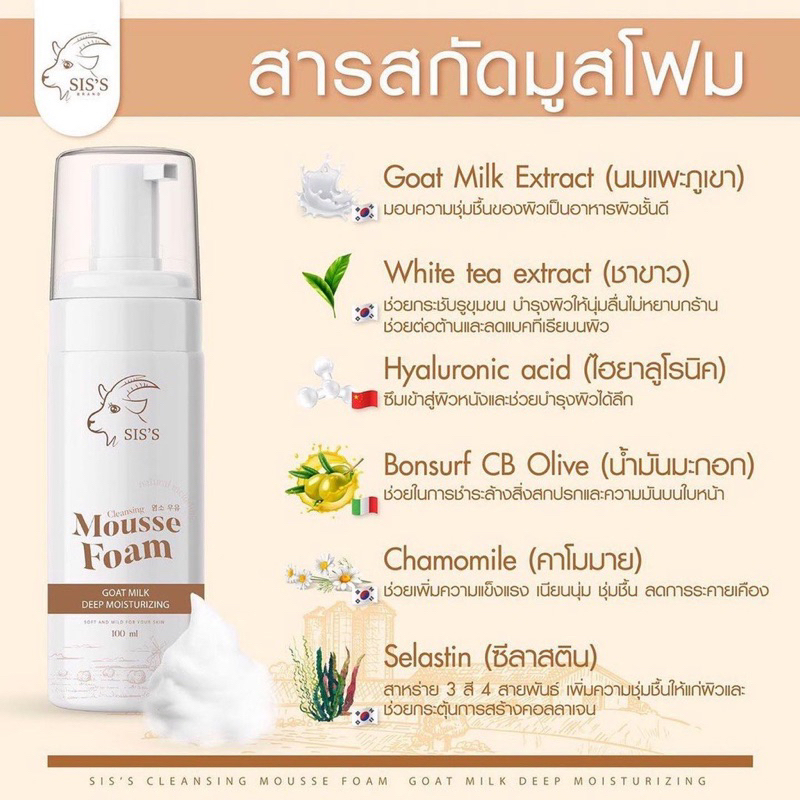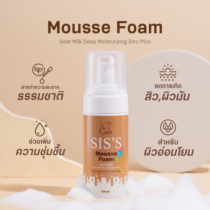 [หมดอายุ10/25 ของแท้‼️]ใหม่ SIS'S มูสโฟมนมแพะ มูสโฟมซิสส์ สารสกัดอ่อนโยน เนื้อมูสละเอียด MOUSSE FOAM GOAT MILK DEEP มูส