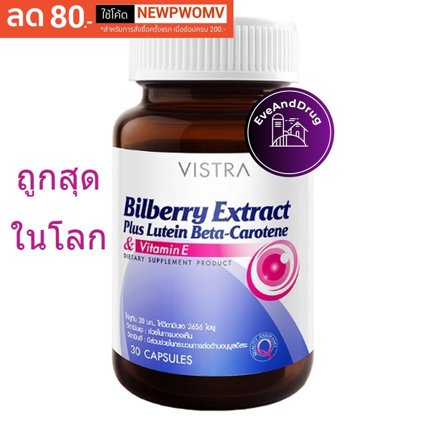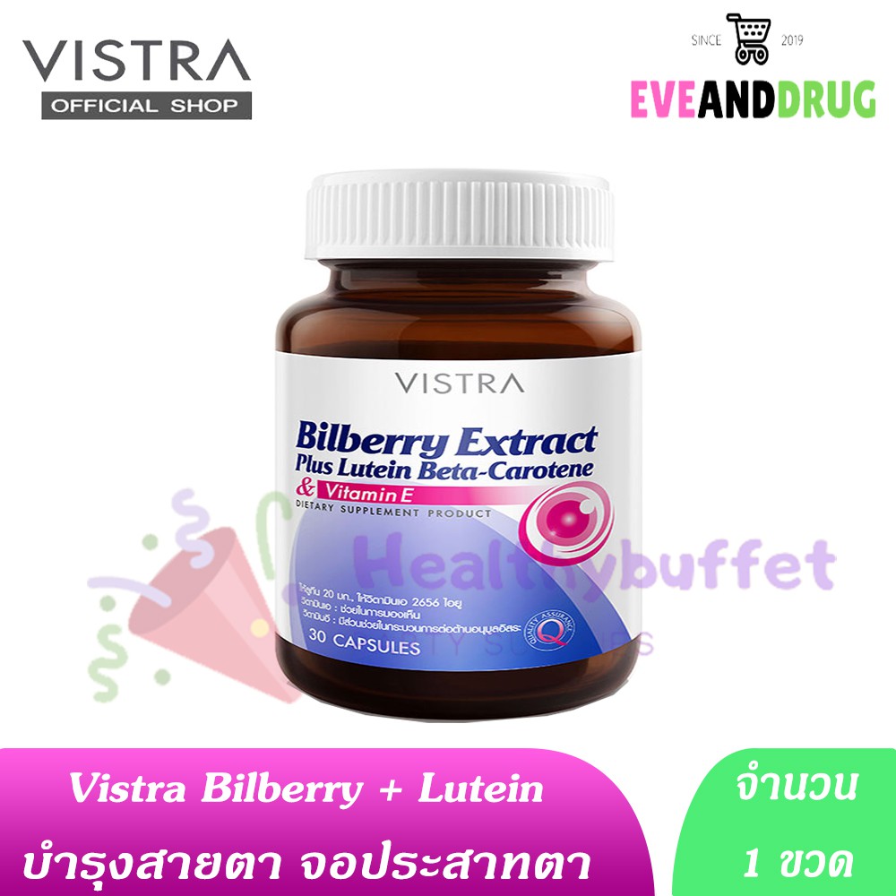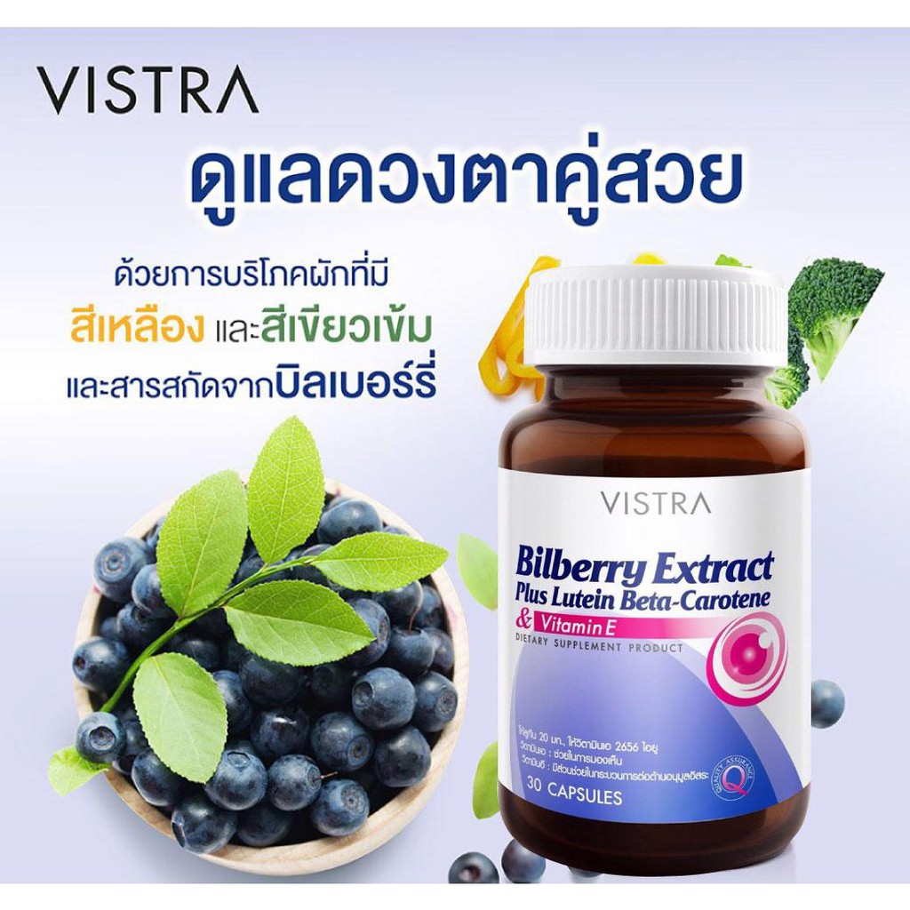 Vistra Bilberry Extract Plus Lutein Beta-Carotene บิลเบอร์รี่ ( 30 Capsules) วิสทร้า บำรุงสายตา บิลเบอรี่ Billberry