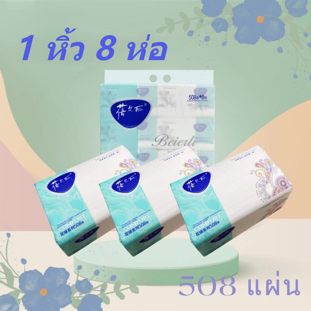 [ 1 ห่อ 🔥 ] ทิชชู่ ทิชชู่เช็ดหน้า เอเลนี ลายดอกไม้ หนา 4 ชั้น เกรดซอฟพรีเมี่ยม แบบยาว 508 แผ่น
