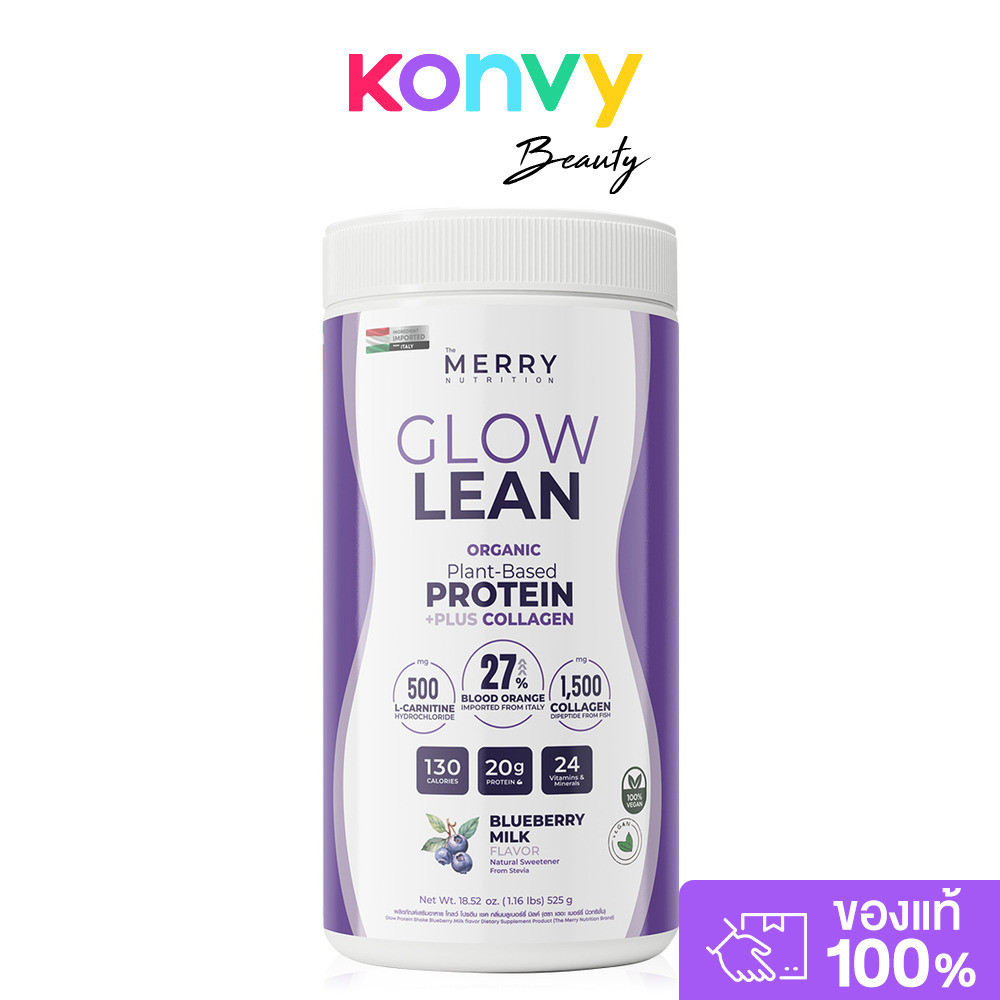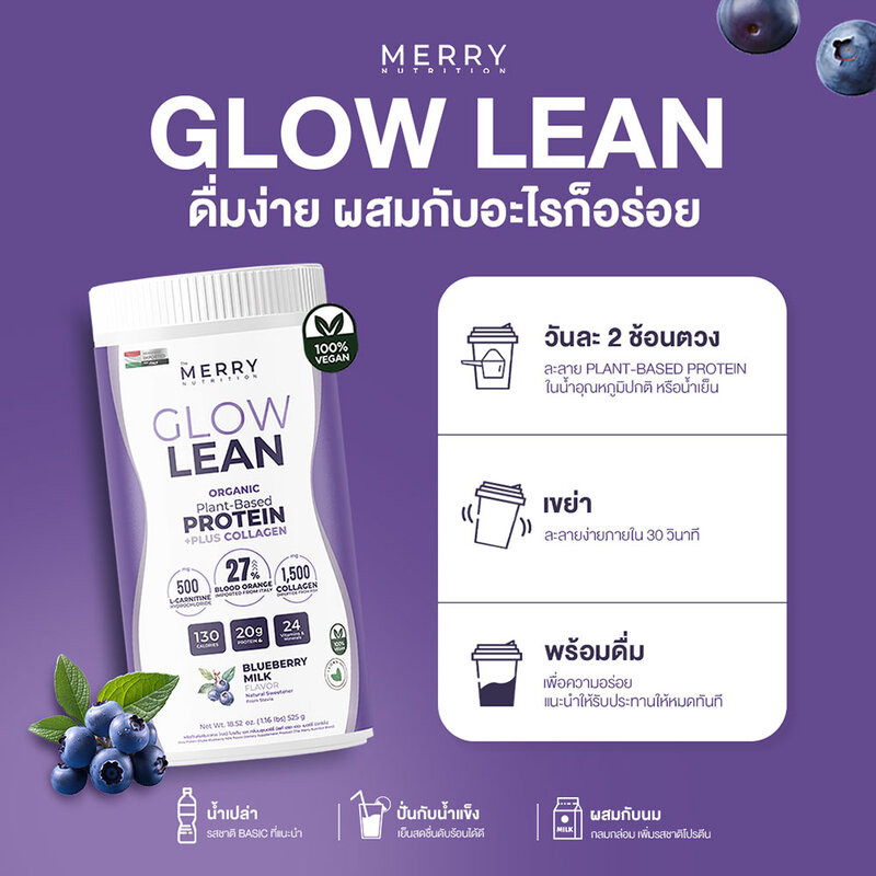 The Merry Glow Lean Protein Shake Blueberry Milk Flavor 525g เดอะ เมอร์รี่ ผลิตภัณฑ์เสริมอาหารโปรตีนจากพืช รสบลูเบอร...