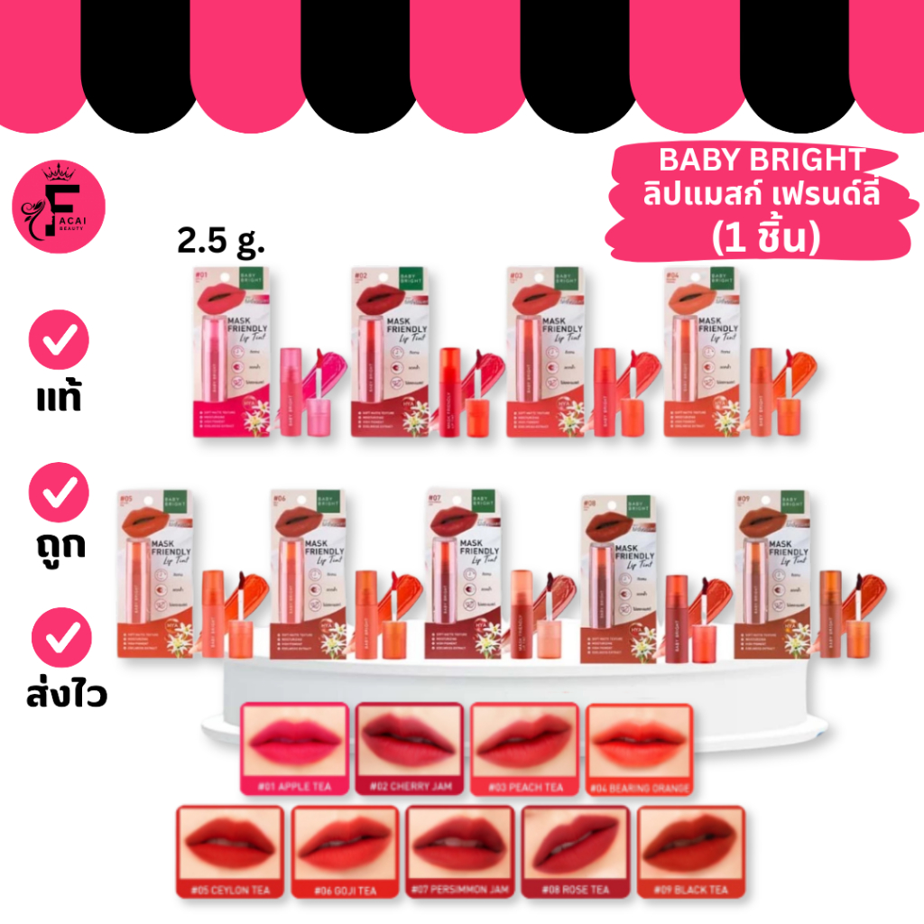 (1 แท่ง) Baby Bright เบบี้ไบร์ท แมสก์เฟรนด์ลี่ลิปทินท์ มี 9 เฉดสี (ปริมาณ 2.5 กรัม)