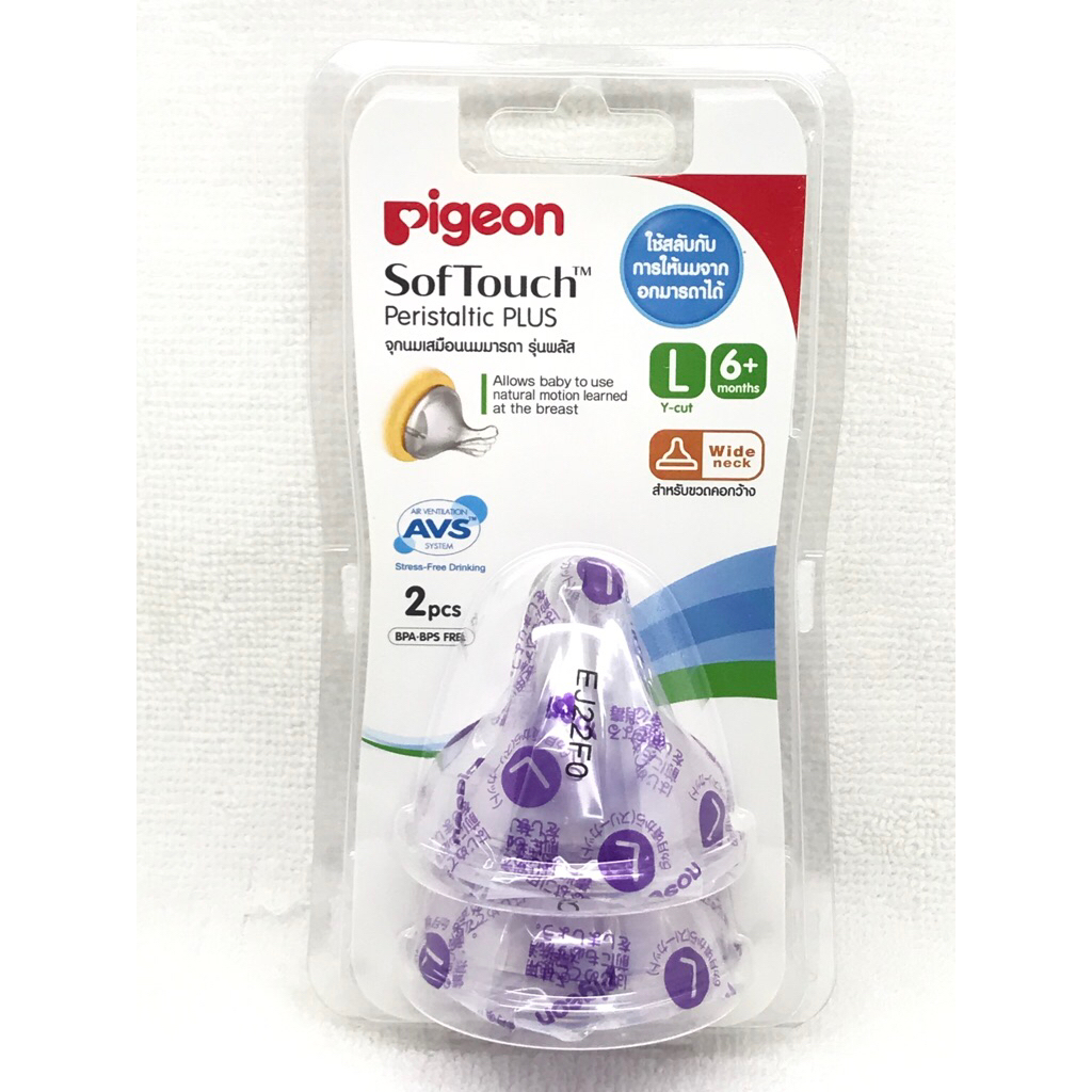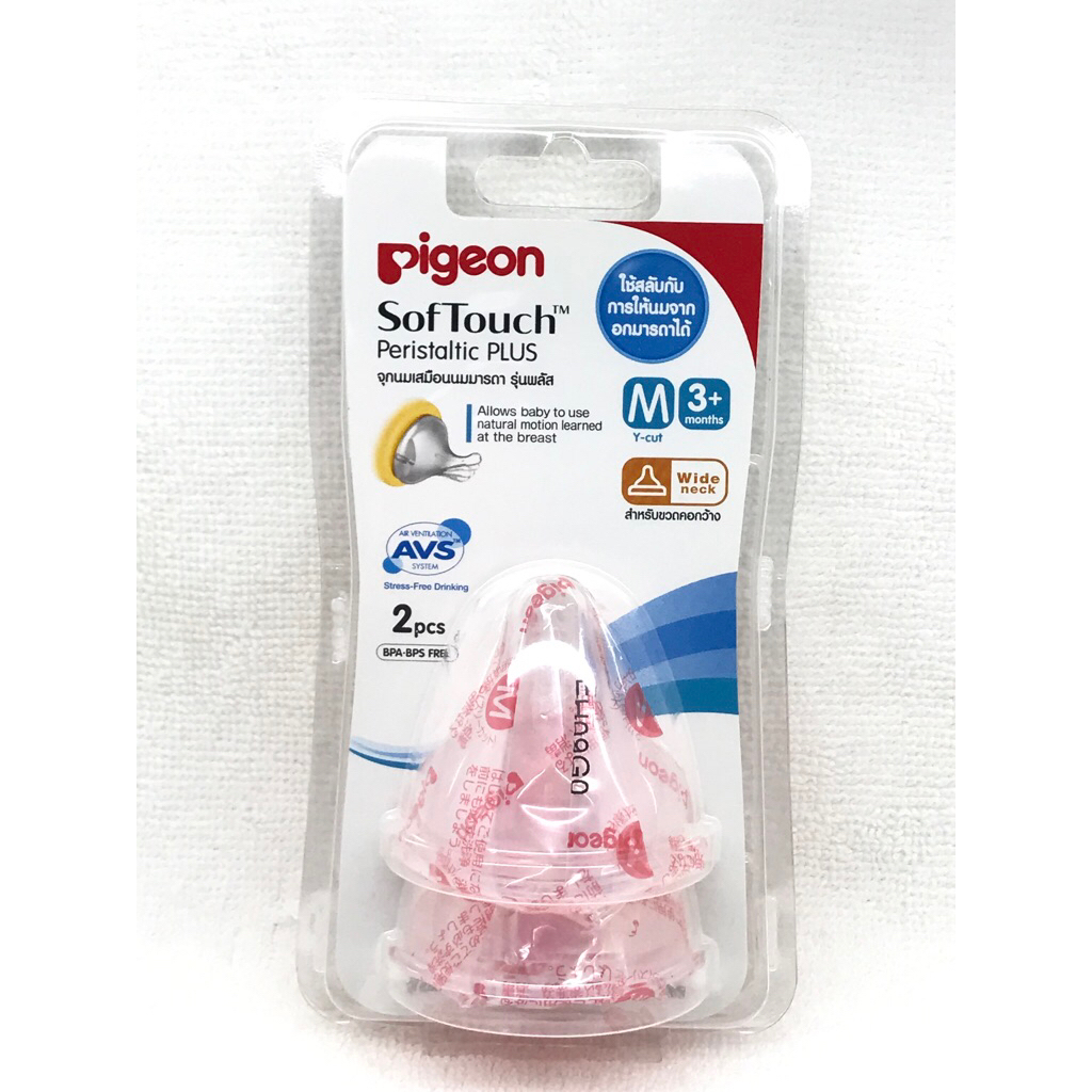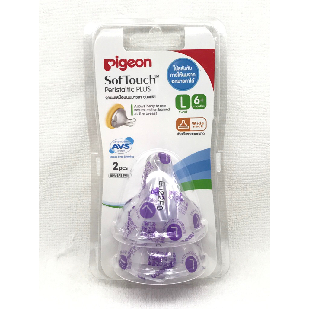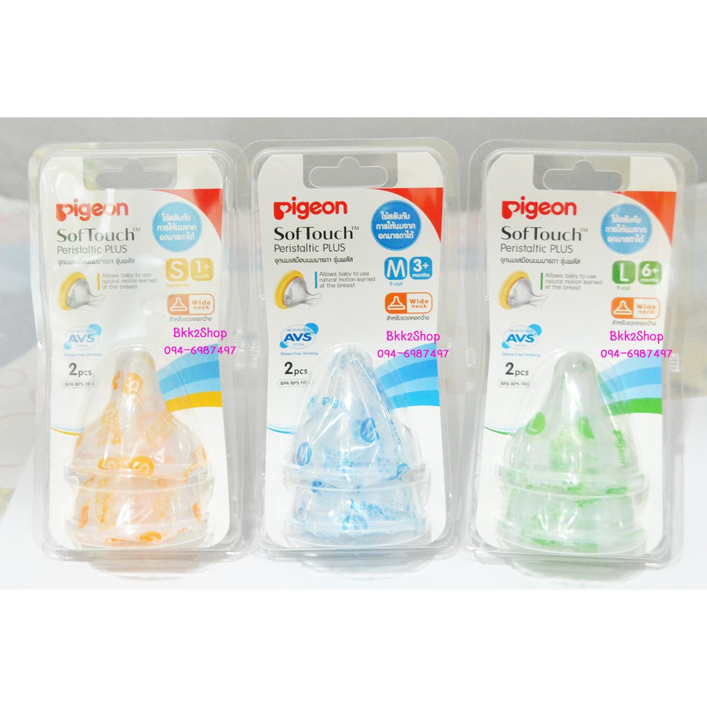 Pigeon พีเจ้น จุกนมเสมือนนมมารดา ซอฟท์ทัช รุ่นพลัส สำหรับขวดคอกว้าง แพ็ค 2 ชิ้น size S,M, L