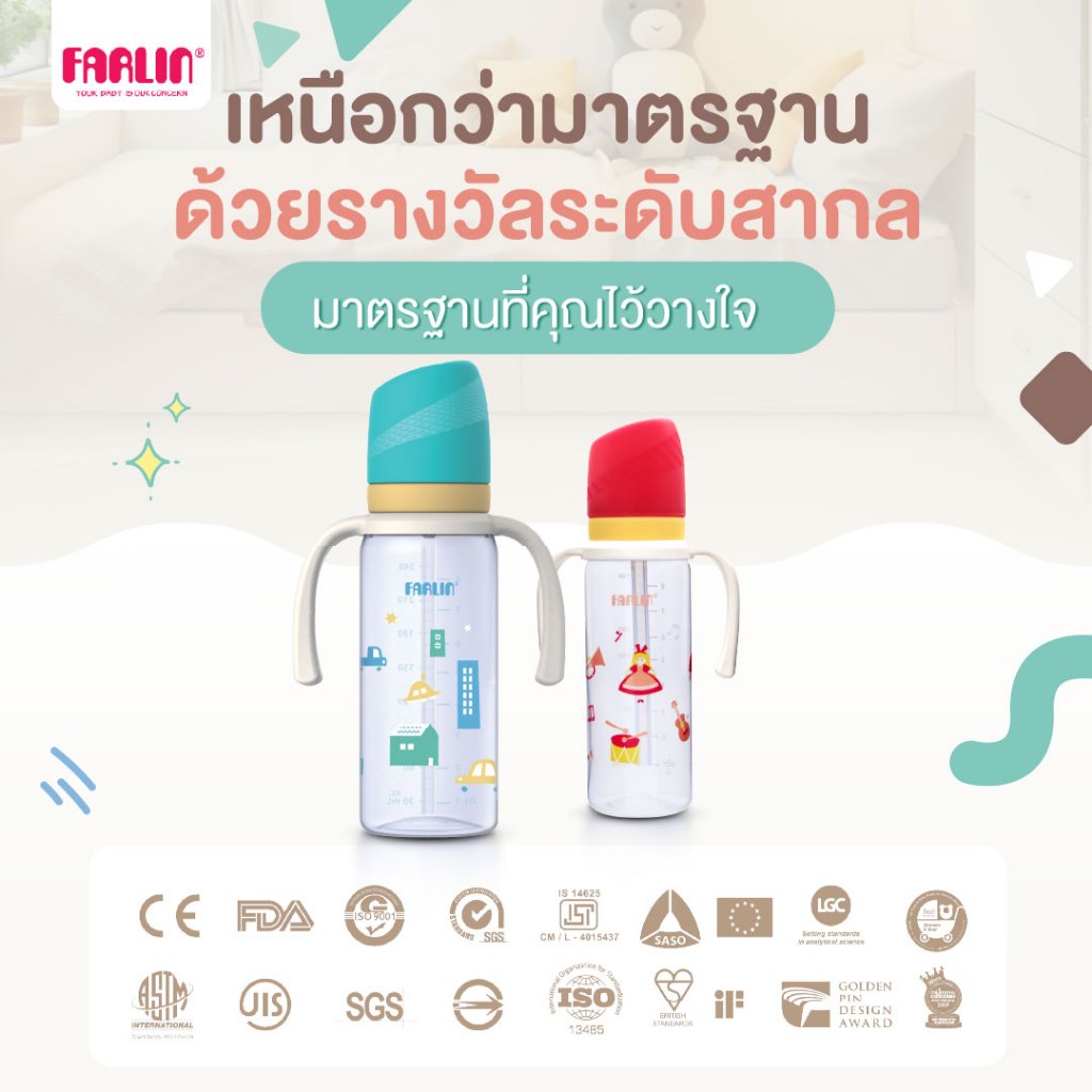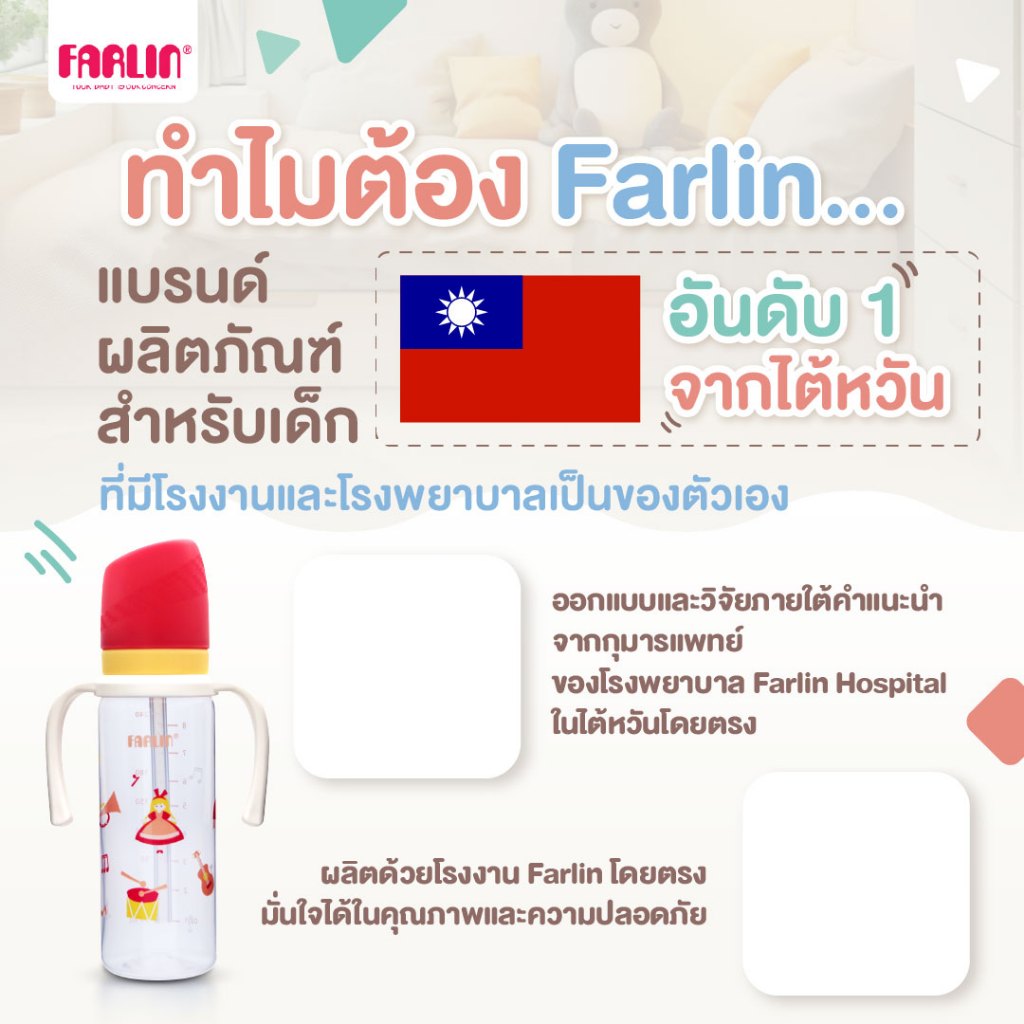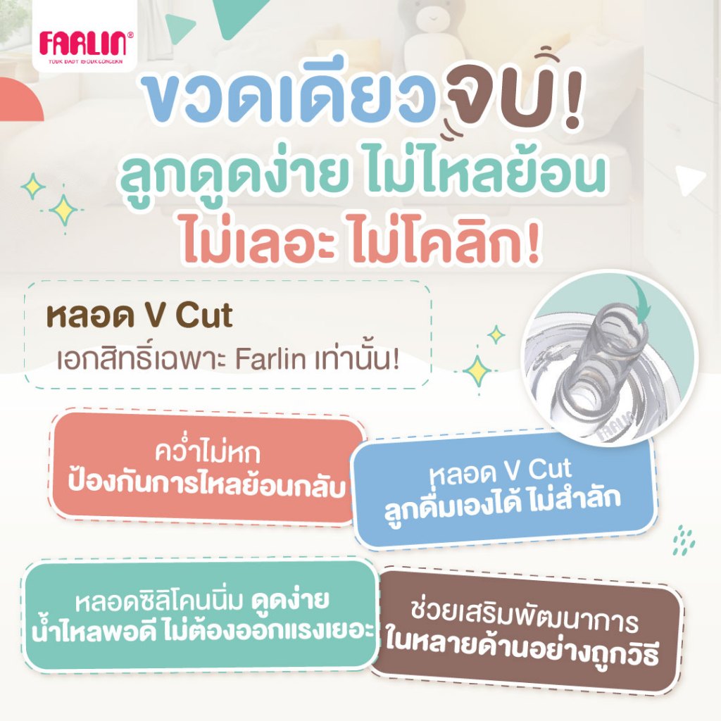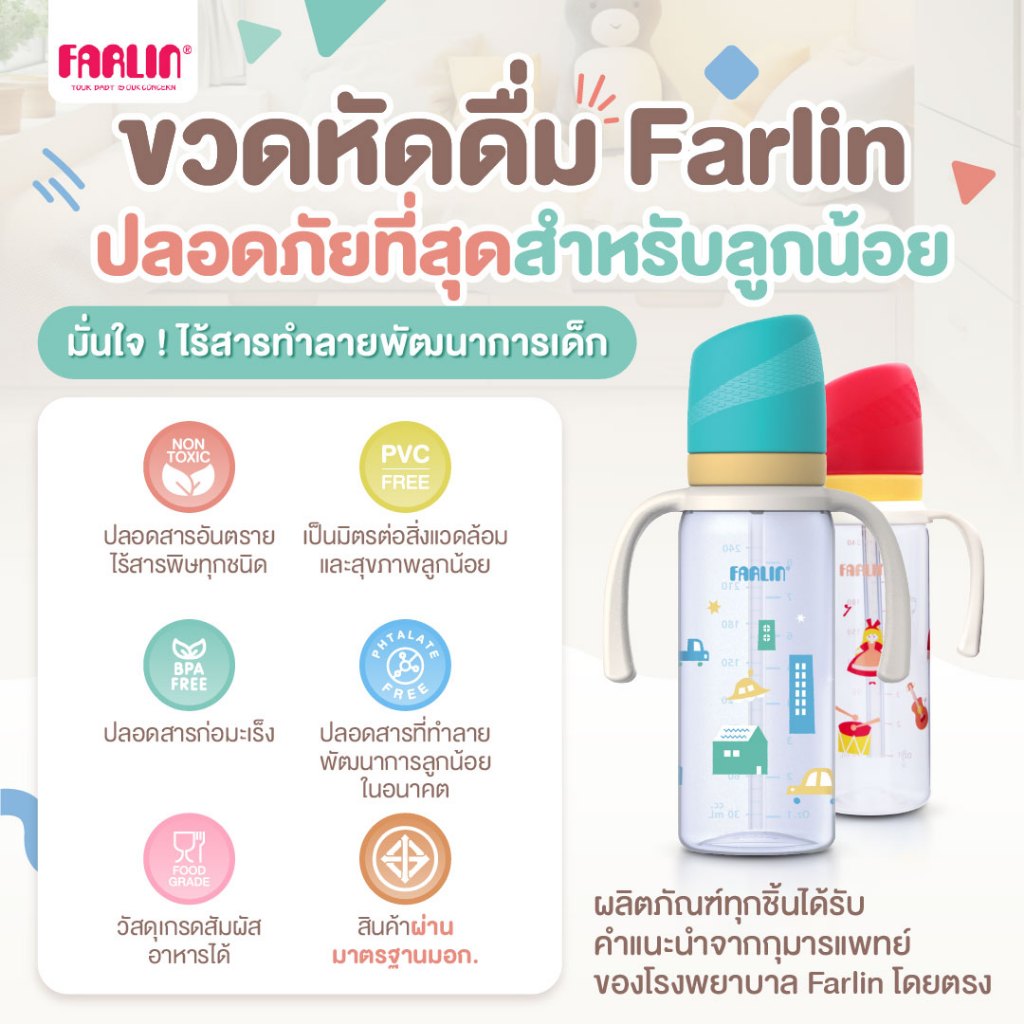 ขวดหัดดื่ม Farlin หลอด V-Cut เอกสิทธิ์เฉพาะ คว่ำไม่หก ป้องกันการหก 2 ชั้น พร้อมวาล์วระบายอากาศ