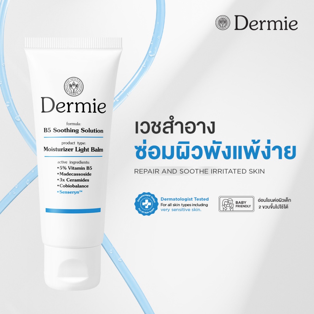 Dermie B5 Soothing Solution moisturizer 40g. มอยเจอรไรเซอร์ ไลท์บาล์ม เติมความชุ่มชื้น ผิวแพ้ง่ายใช้ได้