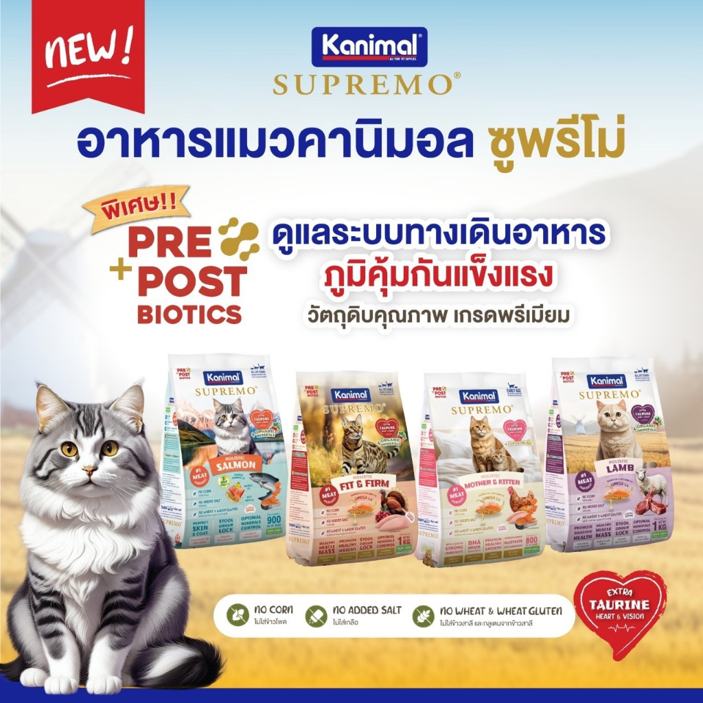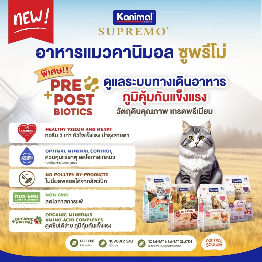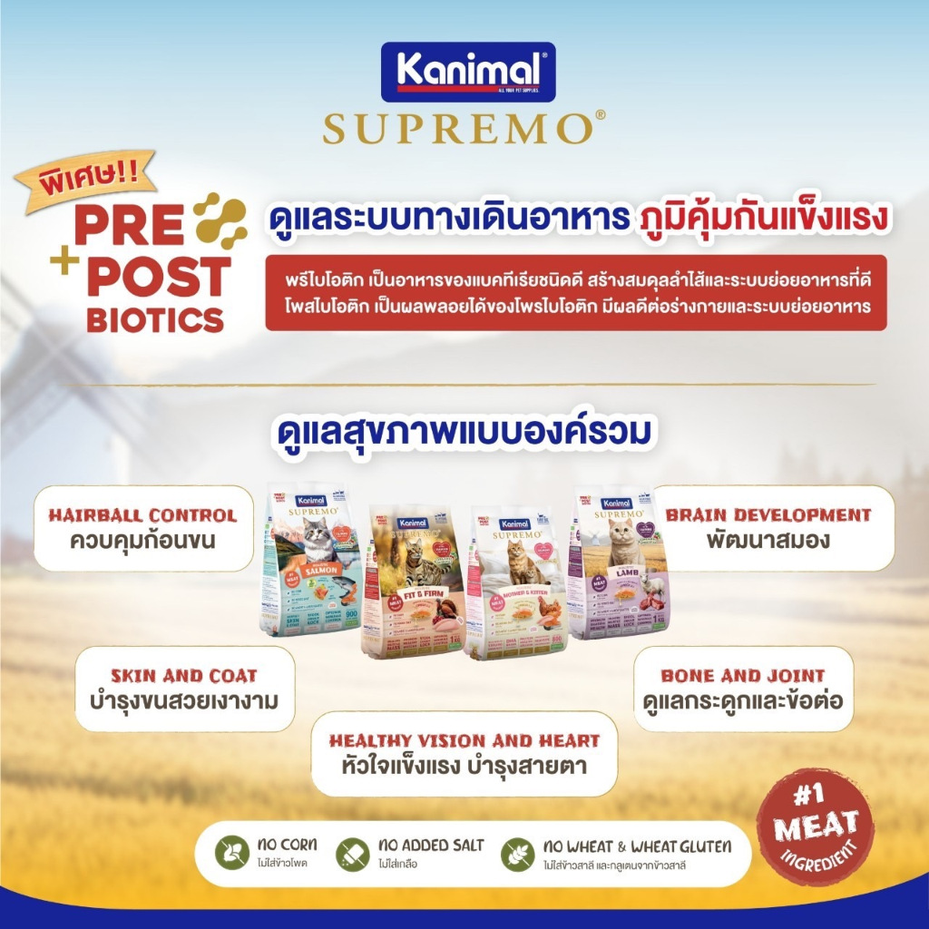 ถุงเล็ก คานิมอล ซูพรีโม Kanimal Supremo อาหารแมว ชนิดเม็ด เกรดพรีเมี่ยม 0.8 กรัม -1 กิโล 7 สูตร
