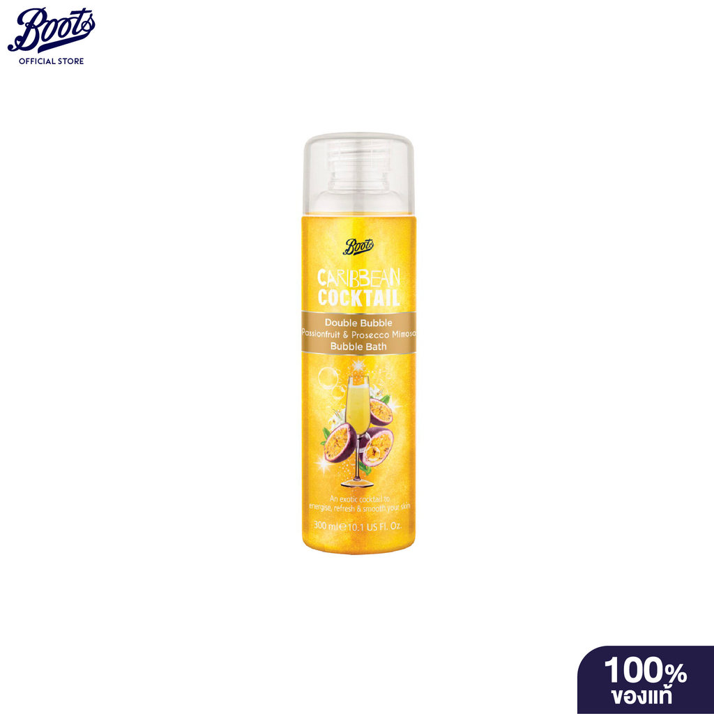 Boots Caribbean Cocktail Double Bubble Passionfruit & Prosecco Mimosa Bubble Bath 300 ml. บู๊ทส์ บับเบิ้ล บาธ