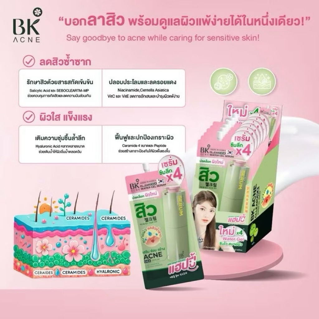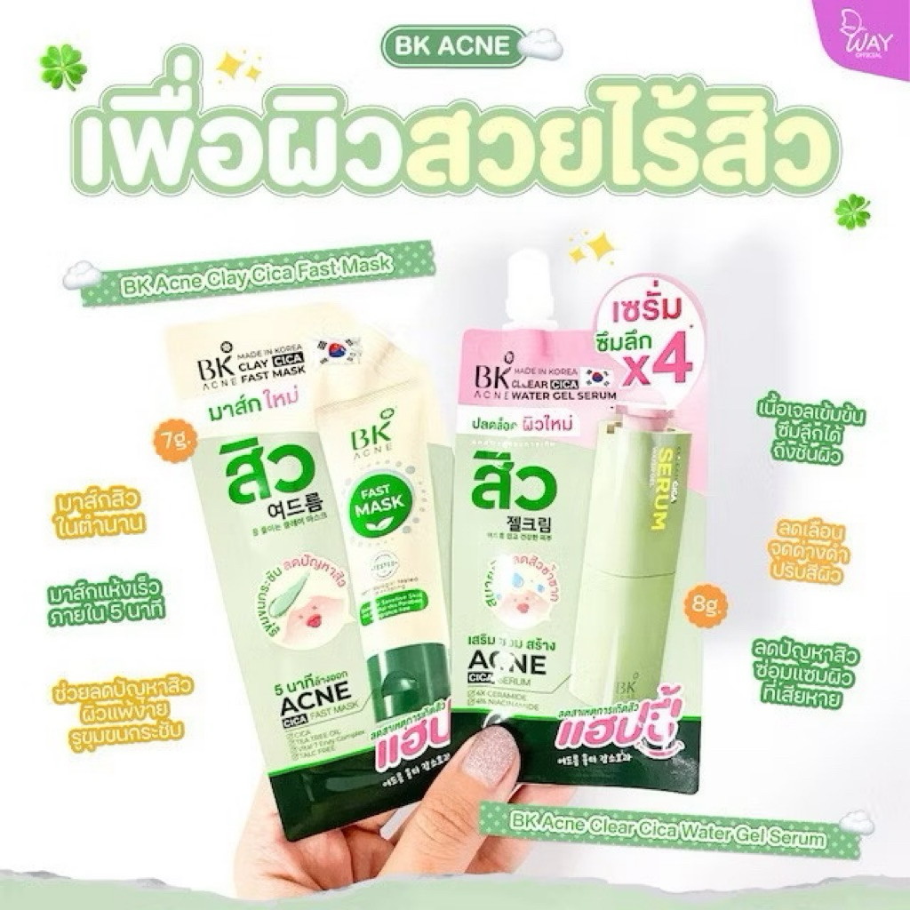 บีเค BKมาร์กสิว/เซรั่มสิว/กันแดดเบสเขียว/แผ่นแปะสิว(ยกกล่อง)