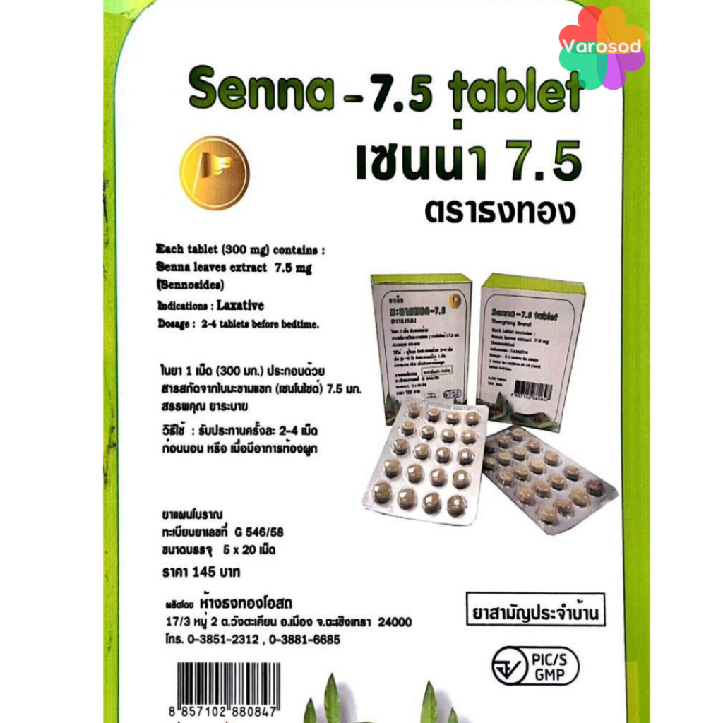🌿 เซนน่า 7.5 Senna Tablet ยาเม็ดมะขามแขก มะขามแขก ชนิดเม็ด ตราธงทอง 5x20เม็ด (100 เม็ด) ยาระบาย ท้องผูก