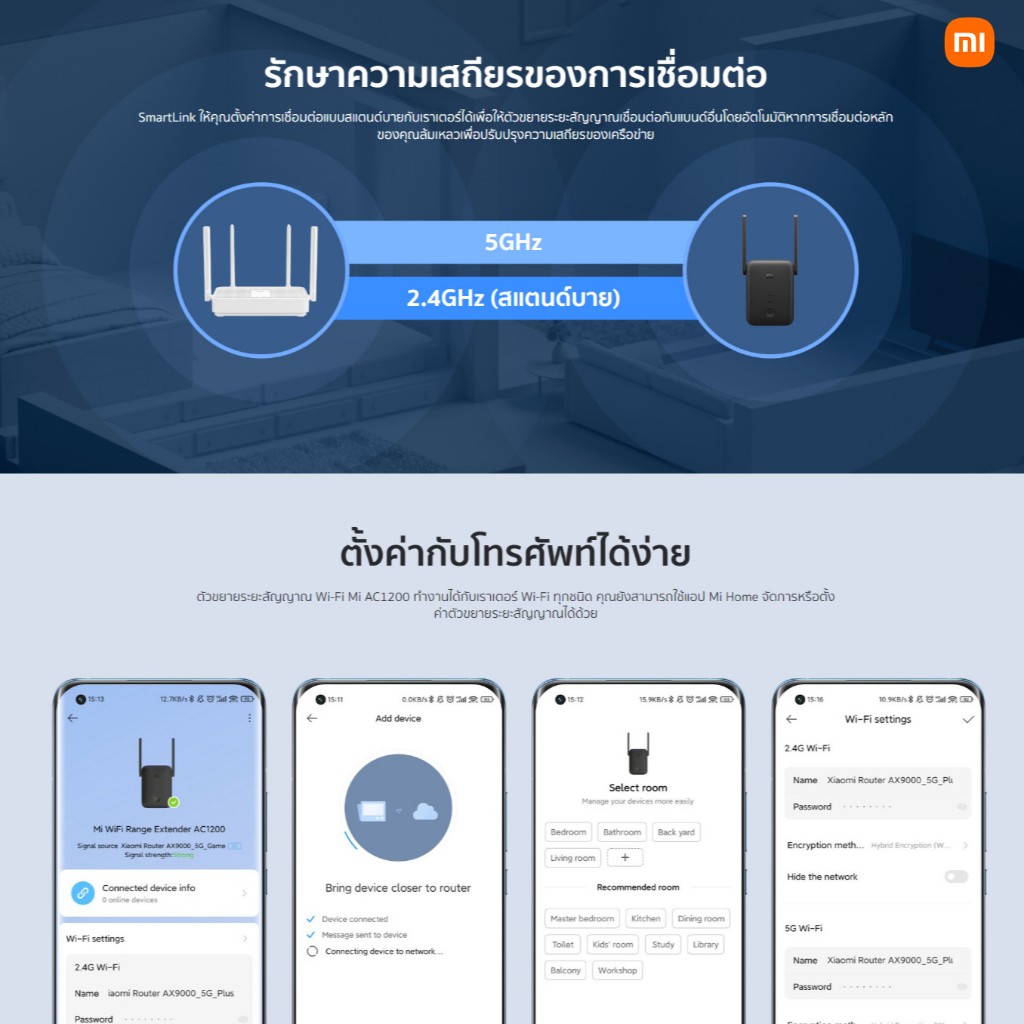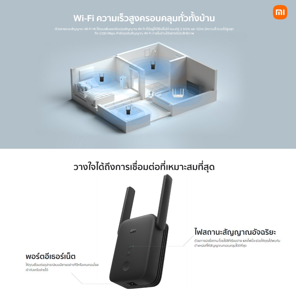 Xiaomi WiFi Range Extender AC1200 ขยายสัญญาณ WiFi ตัวขยายสัญญาณ | 1200Mbps 5GHz | พอร์ต Ethernet | Wi-Fi Amplifier