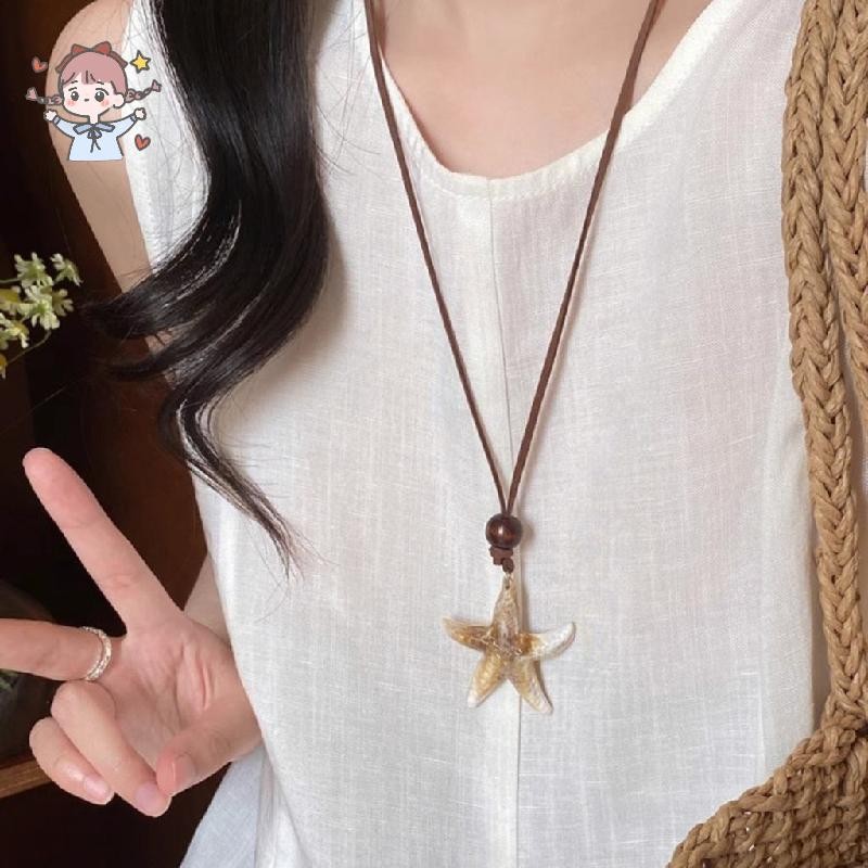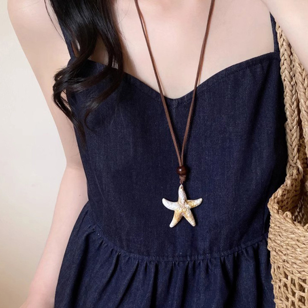 สร้อยคอปลาดาวสําหรับผู้หญิง Boho Chic สร้อยคอจี้ยาวสําหรับสวมใส่ทุกวันหรือปาร์ตี้ชายหาด