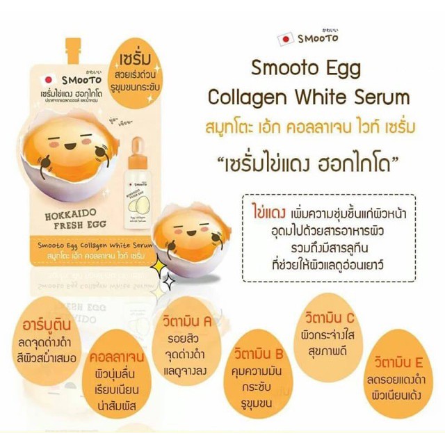 🔥กล่องx6ซอง🔥Smooto Egg Collagen White Serum สมูทโตะ เอ้ก คอลลาเจน ไวท์ เซรั่ม 10 กรัม