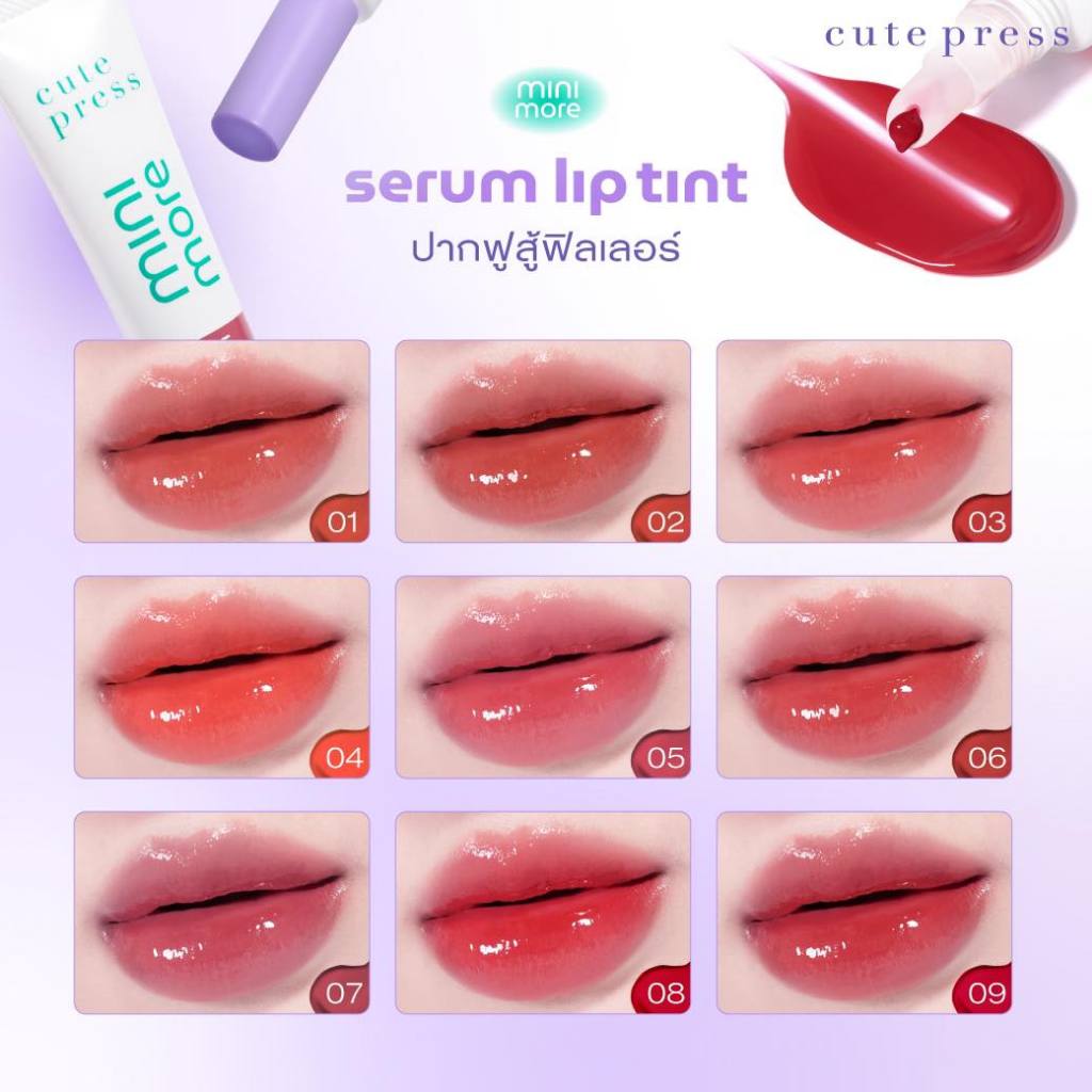 ถูก/แท้/มีไลฟ์ ลิป Cute Press Mini More Serum Lip Tint เซรั่มลิปทินท์ ลิปทิ้น ปากฉ่ำ อวบอิ่ม ฉ่ำวาว สีชัด ติดทน