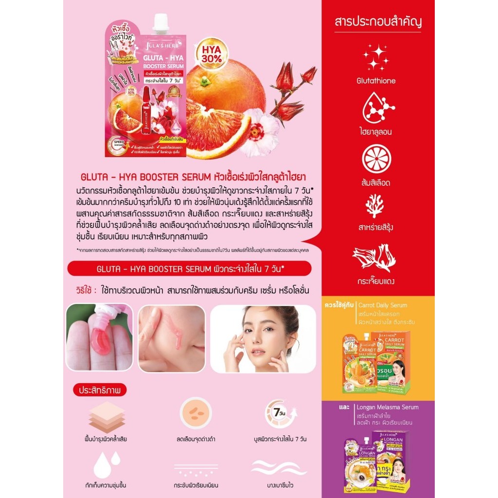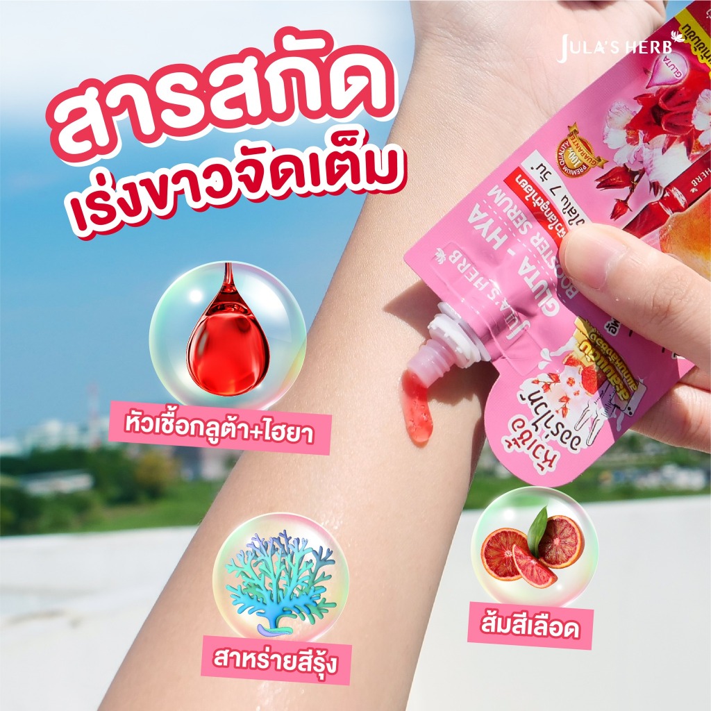 [รุ่นขวด] Jula s Herb Gluta-Hya Booster Serum จุฬา เฮิร์บ กลูต้า [หัวเชื้อ ออร่าไวท์] [30 g.] [1 กล่อง] ไฮยาส้มแดงเซรั่ม