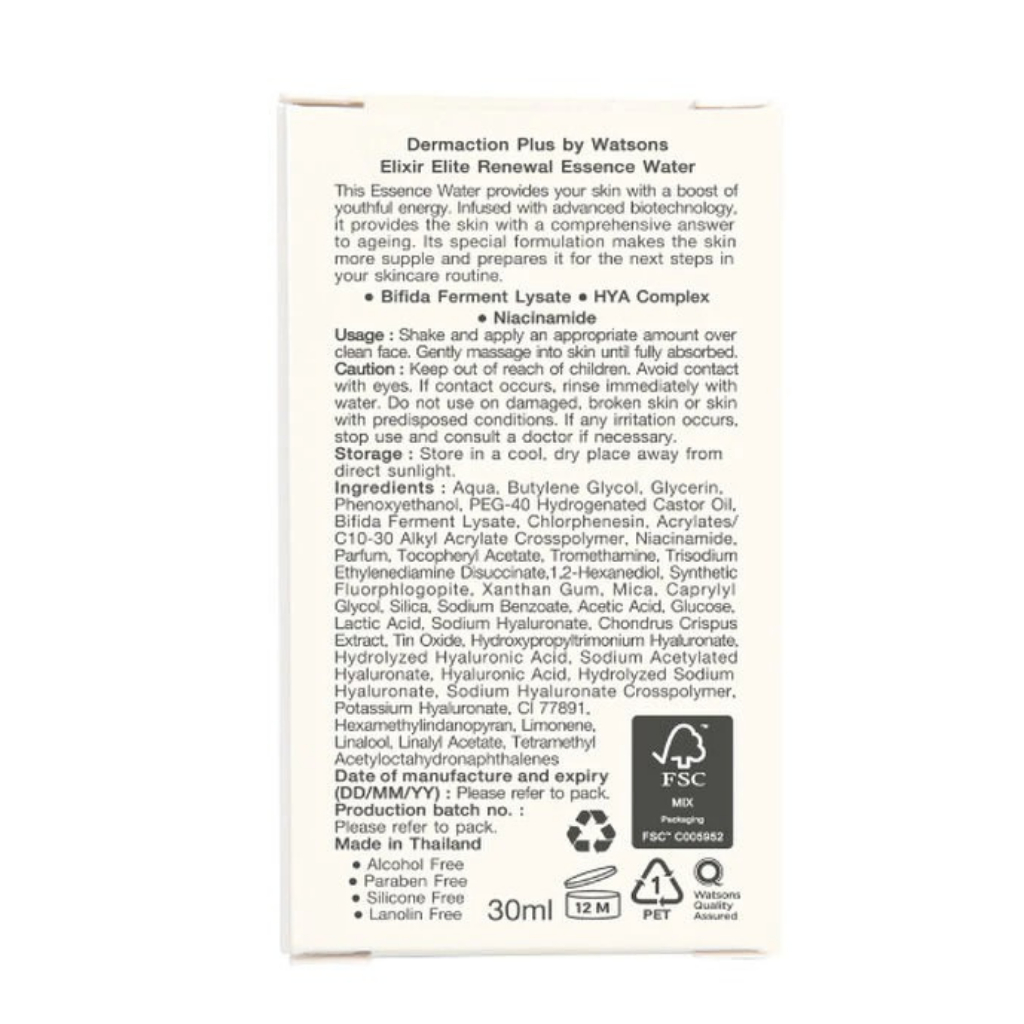 Dermaction น้ำตบ Plus by Watsons เดอมาแอคชัน พลัส บาย วัตสัน อีลิคเซอร์ อิลีท รีนิววัล เอสเซ้นส์ วอเตอร์ 30 มล.