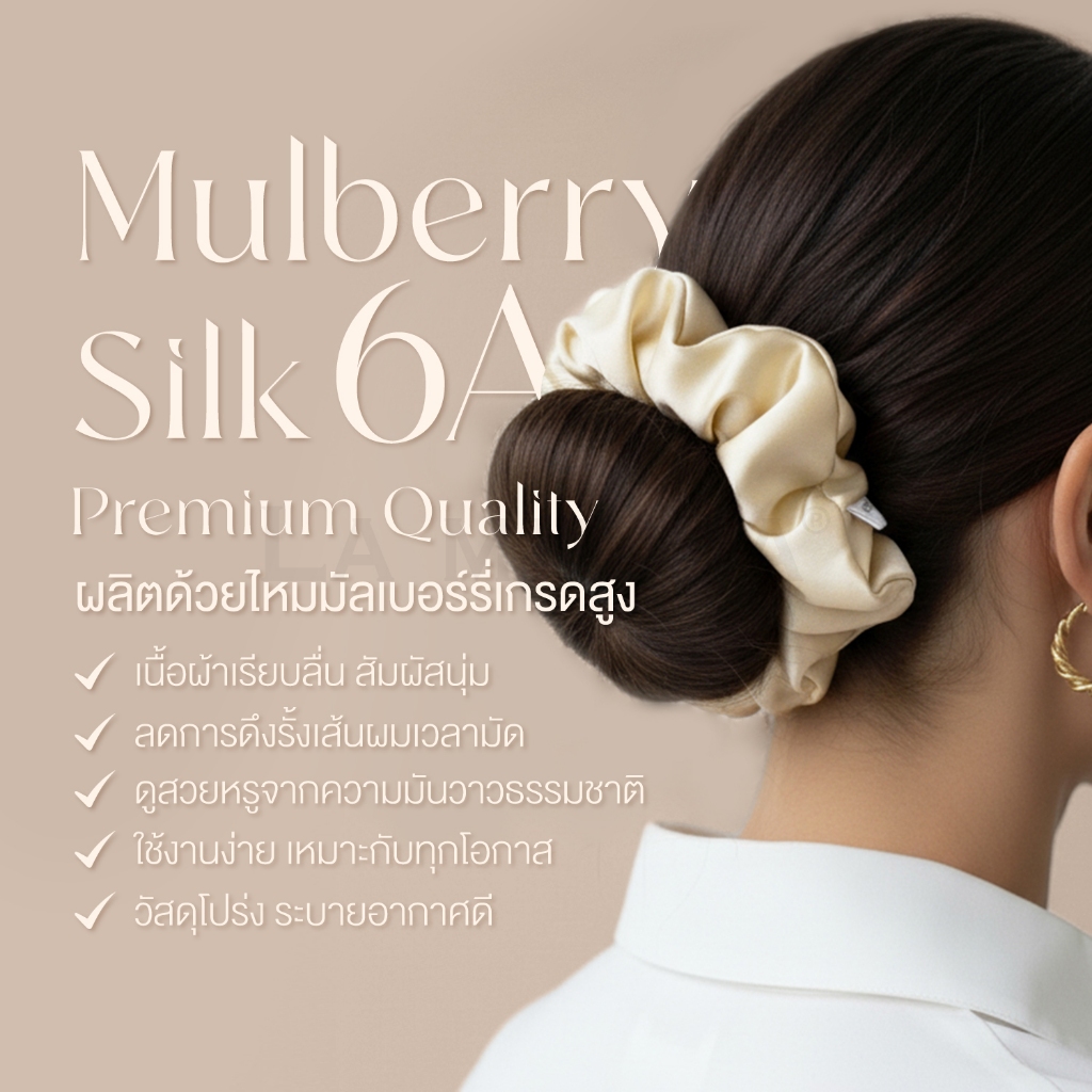 LA MILLIA Mulberry Silk Scrunchie ลา มิลเลีย สครันชี่ ไหมมัลเบอร์รี่ ผ้าไหม ยางรัดผม ยางมัดผม พรีเมี่ยม หรูหรา