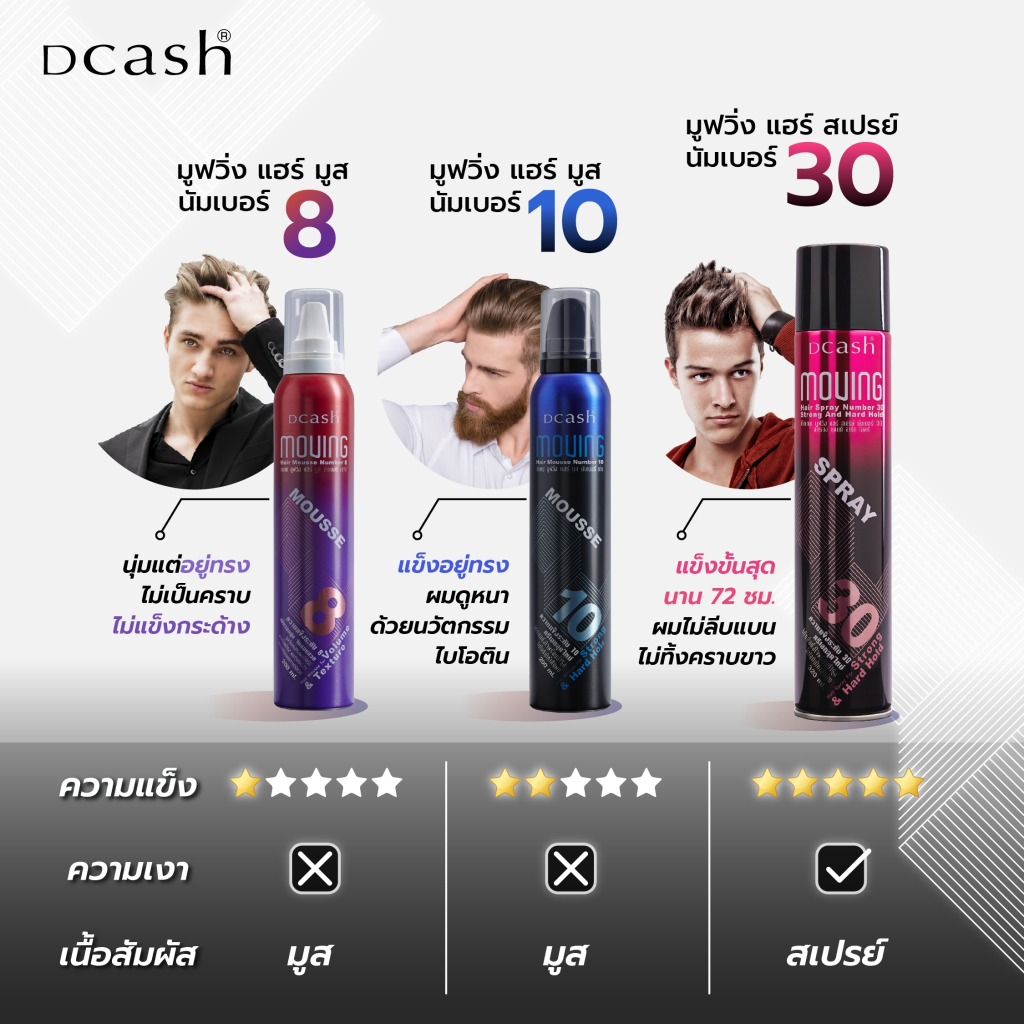 Dcash ดีแคช มูฟวิ่ง แฮร์ มูส 200 มล. นัมเบอร์ 8, 10