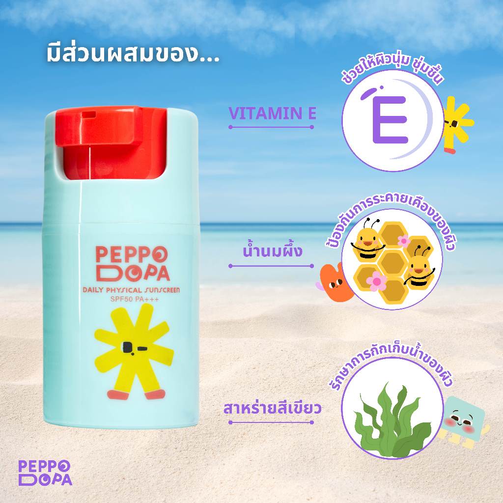 PEPPODOPA ครีมกันแดดเด็ก สูตร Physical 100% รุ่นฝาคลิ๊กล็อค