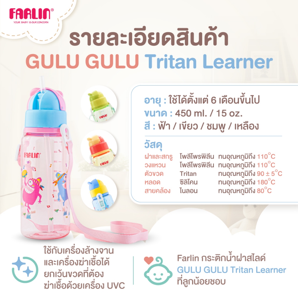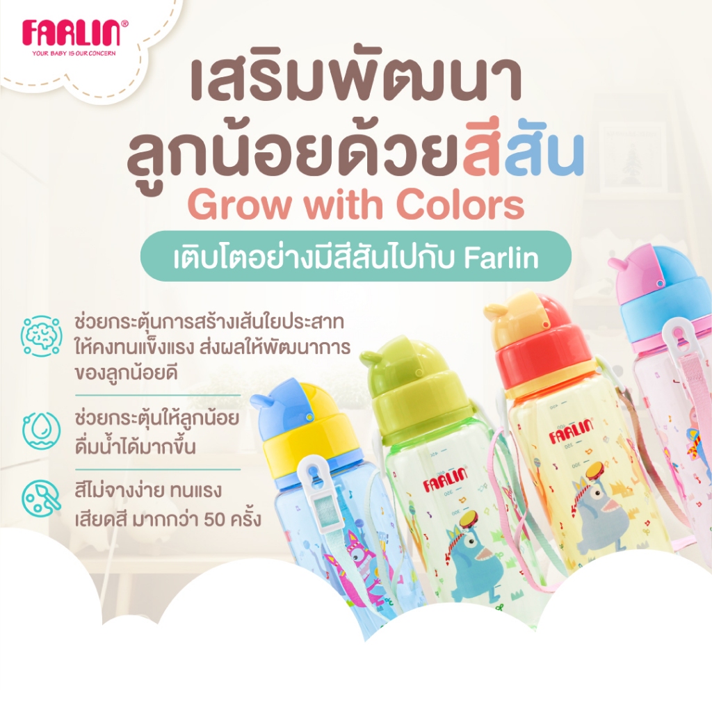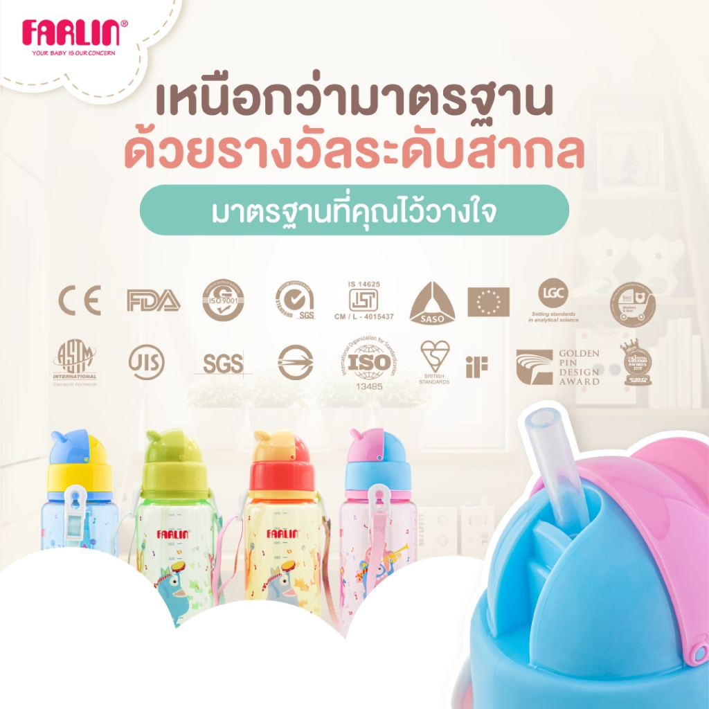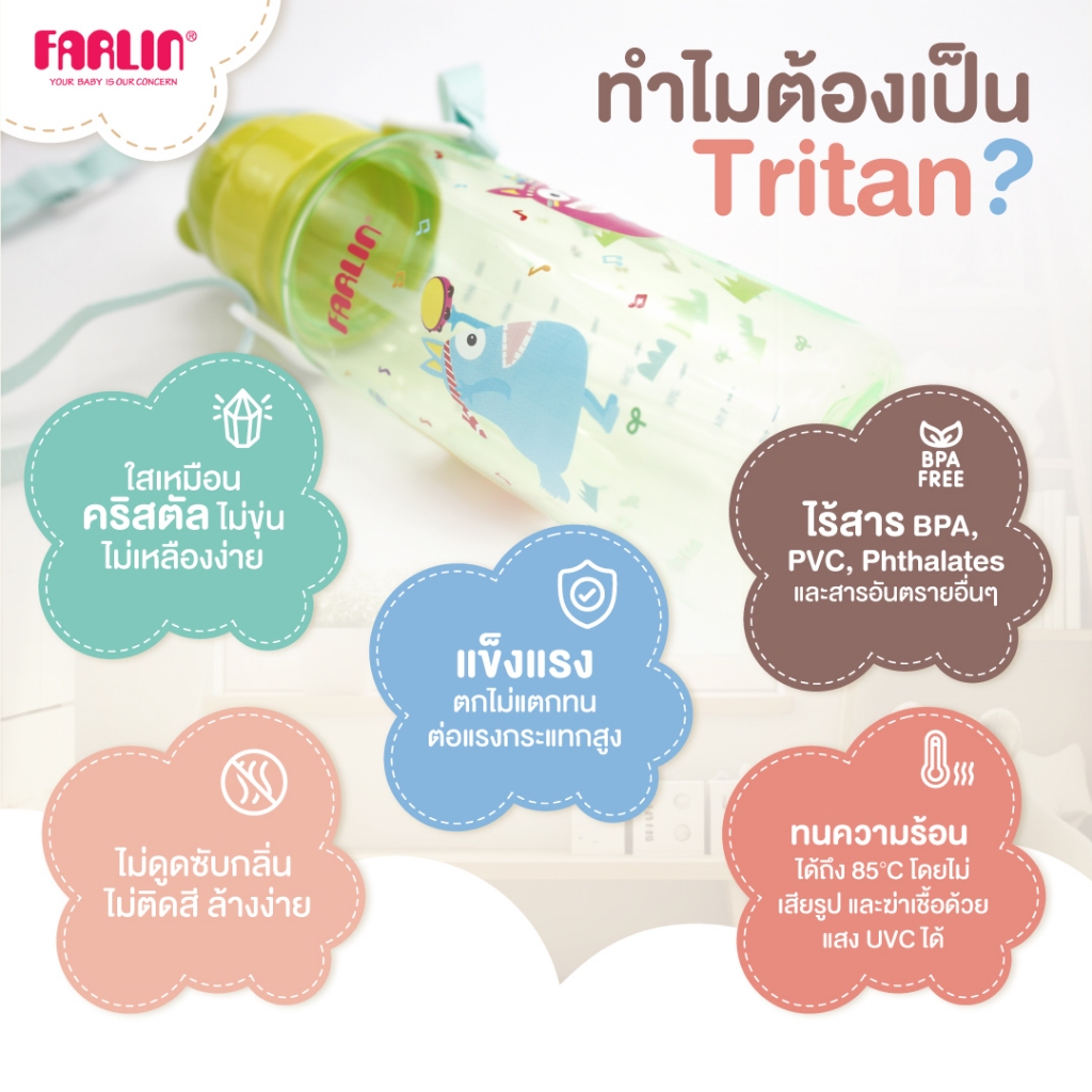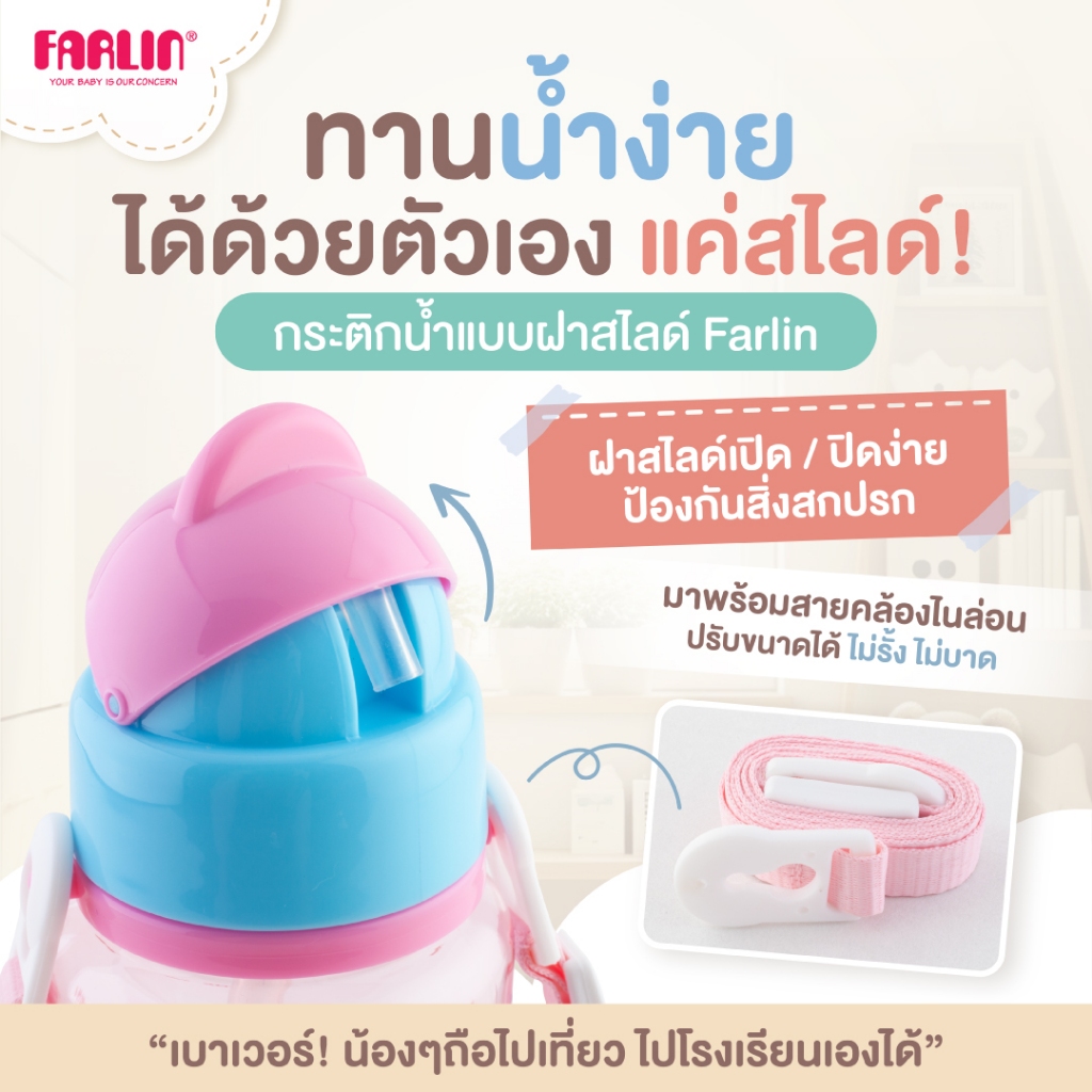 [ไม่หวั่นตก100ครั้งก็ไม่แตก!]Farlin กระต ิกน้ำฝาสไลด์ วัสดTritanจากUSA เบา ใสดุจคริสตัลแต่แข็งแรงกว่า