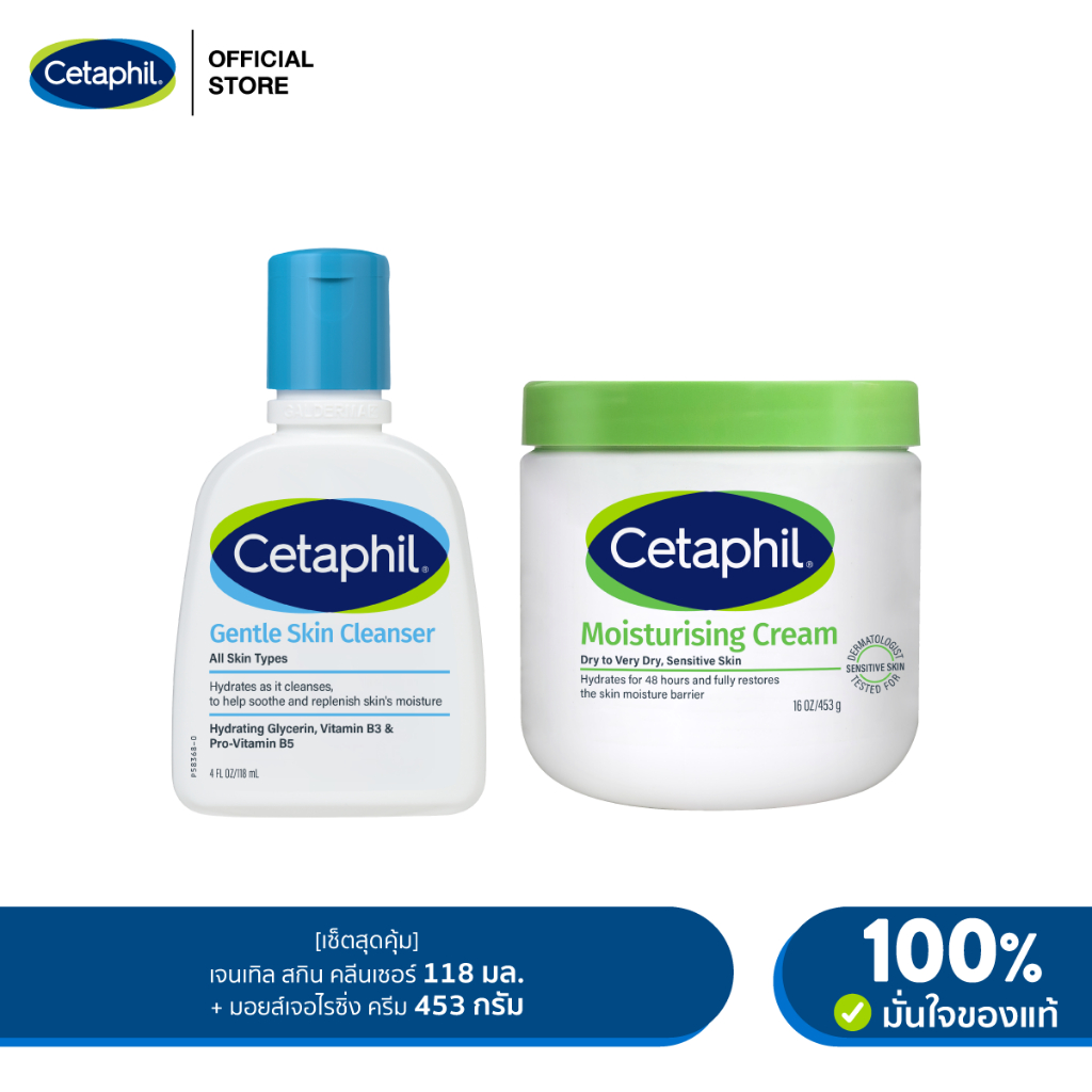 [เซตสุดคุ้ม] เซตาฟิล Cetaphil Gentle Skin Cleanser 118 ml. + Cetaphil Moisturizing Cream 453 g. (แพ็คเกจใหม่)