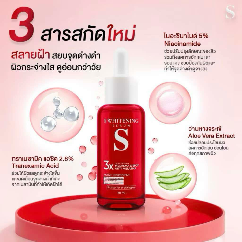 1 ขวด เซรั่ม s เอส สิว กระ ริ้วรอย serum acne s whitening freckle dark spot 30ml